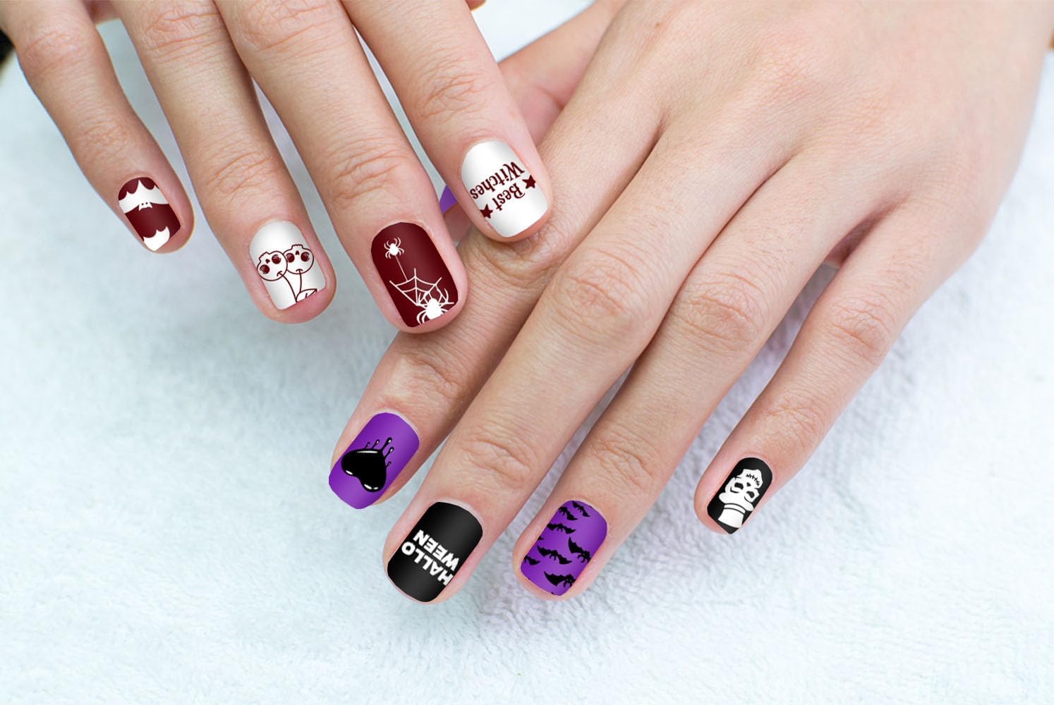 - Package Contains: 6 pieces Halloween nail stamping templates, including pumpkin, skeleton, ghost, spider web, blood, stripe background, pumpkin face, gnome, cat, Halloween words, etc.. Each template contains a lot of sketches and offers you multiple choices to create proper style and make your nail more attractive. Notice: the stamp and scraper are not included.