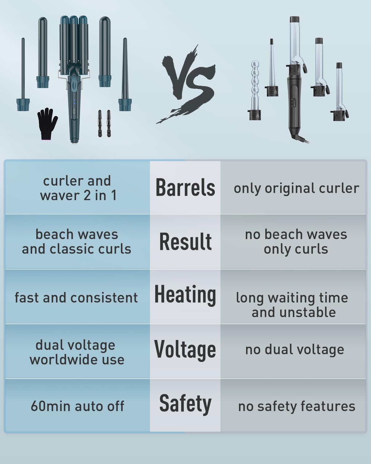 - Make Waves Hair Faster: The beach wave curling iron boasts 3 extra-long barrels, designed to heat longer hair lengths evenly and faster to get tighter, deeper, longer-lasting beach waves.