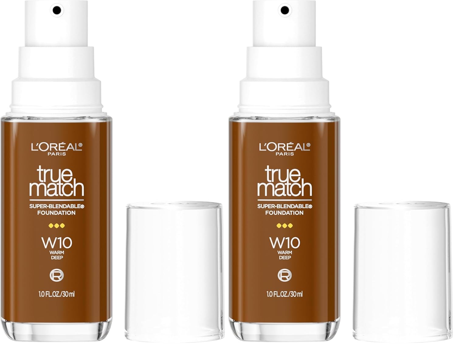 L’Oréal Paris True Match Super-Blendable Foundation, Medium Coverage Liquid Foundation Makeup with SPF 17, W10, Deep, 1 Fl Oz (Pack of 2)