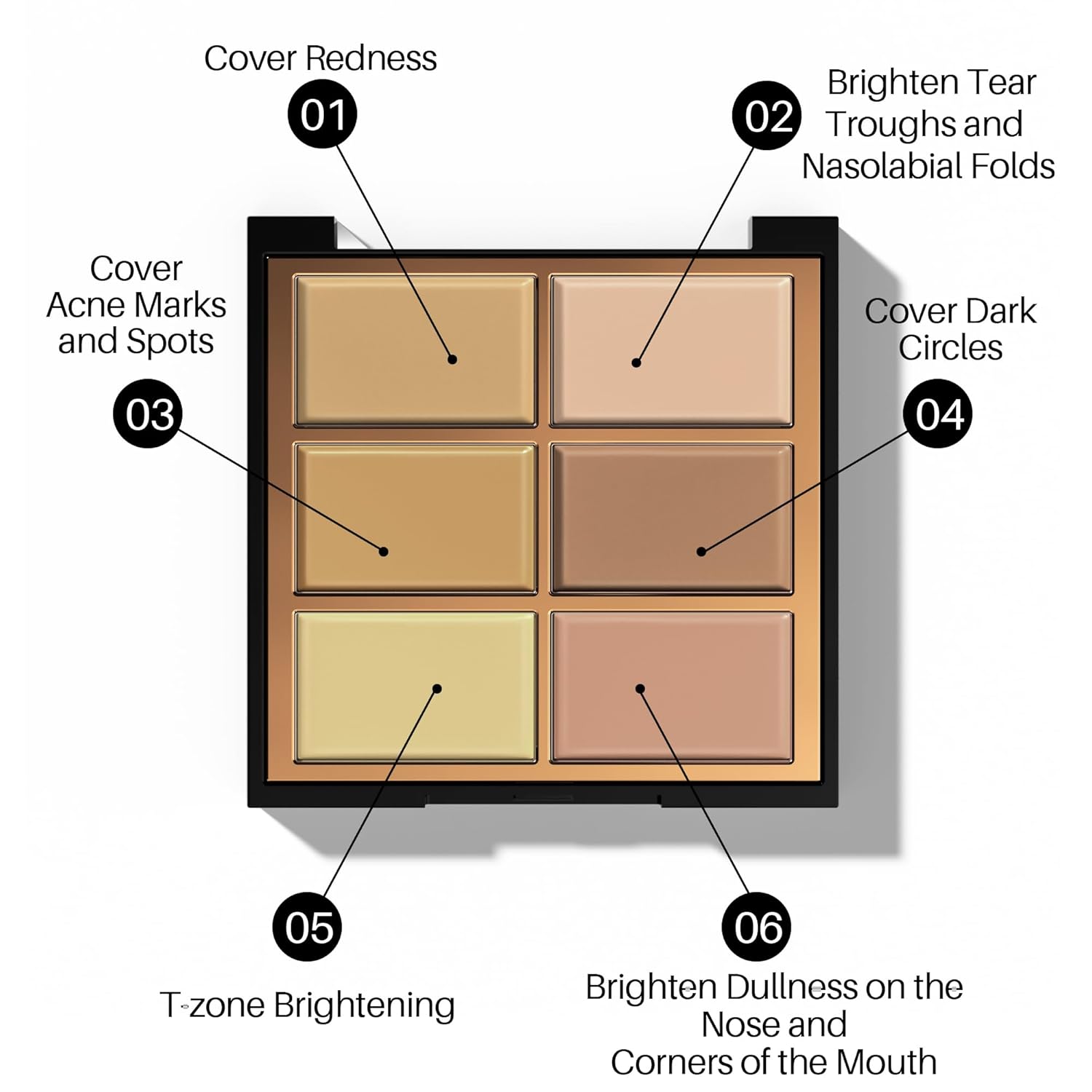 - Versatile and Full Coverage: Discover the power of FV 6-shade color corrector palette, designed to address various skin concerns like dark circles, redness, and acne. Achieve a flawless, natural look by blending the colors for enhanced coverage, highlighting your unique facial features.