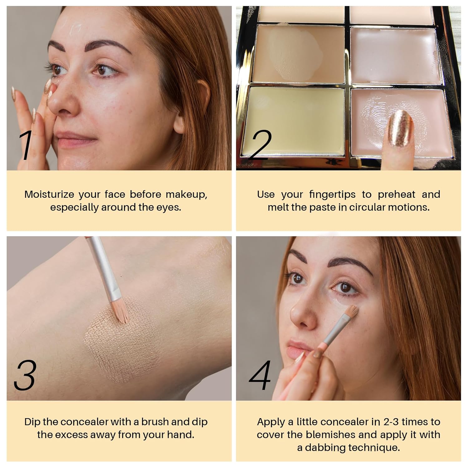 - Lightweight & Easy to Blend: Our cream concealer palette is suitable for all skin types, from oily to dry. Experience the lightweight, creamy formula that blends seamlessly without creasing, making it an ideal choice for fair/light skin tones.