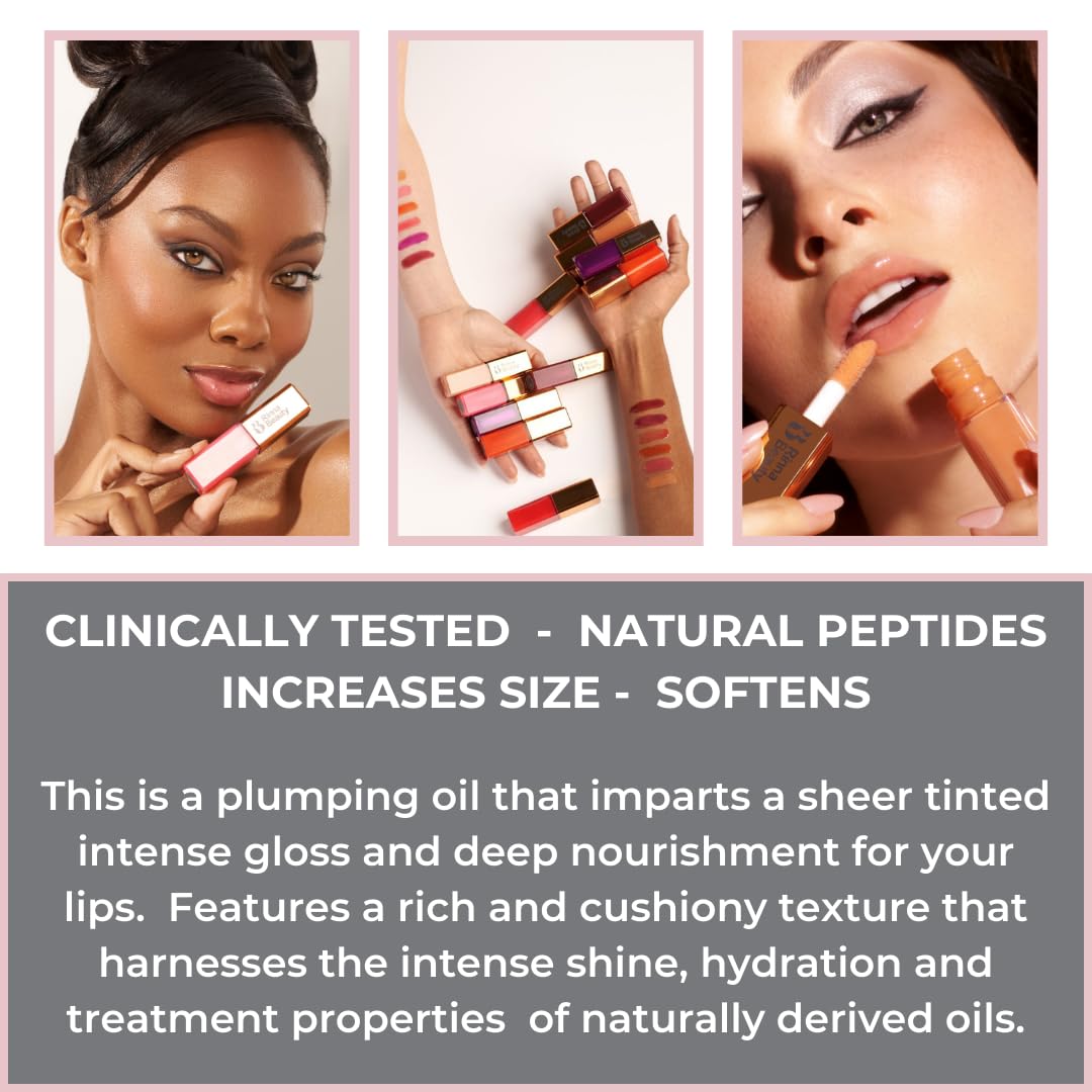 - PLUMPING PEPTIDE HYDRATION: Larger than Life lip plumping oil is super glossy, sheer tinted deep nourishment for your lips. Extreme hydration from natural oils for a cushiony texture.