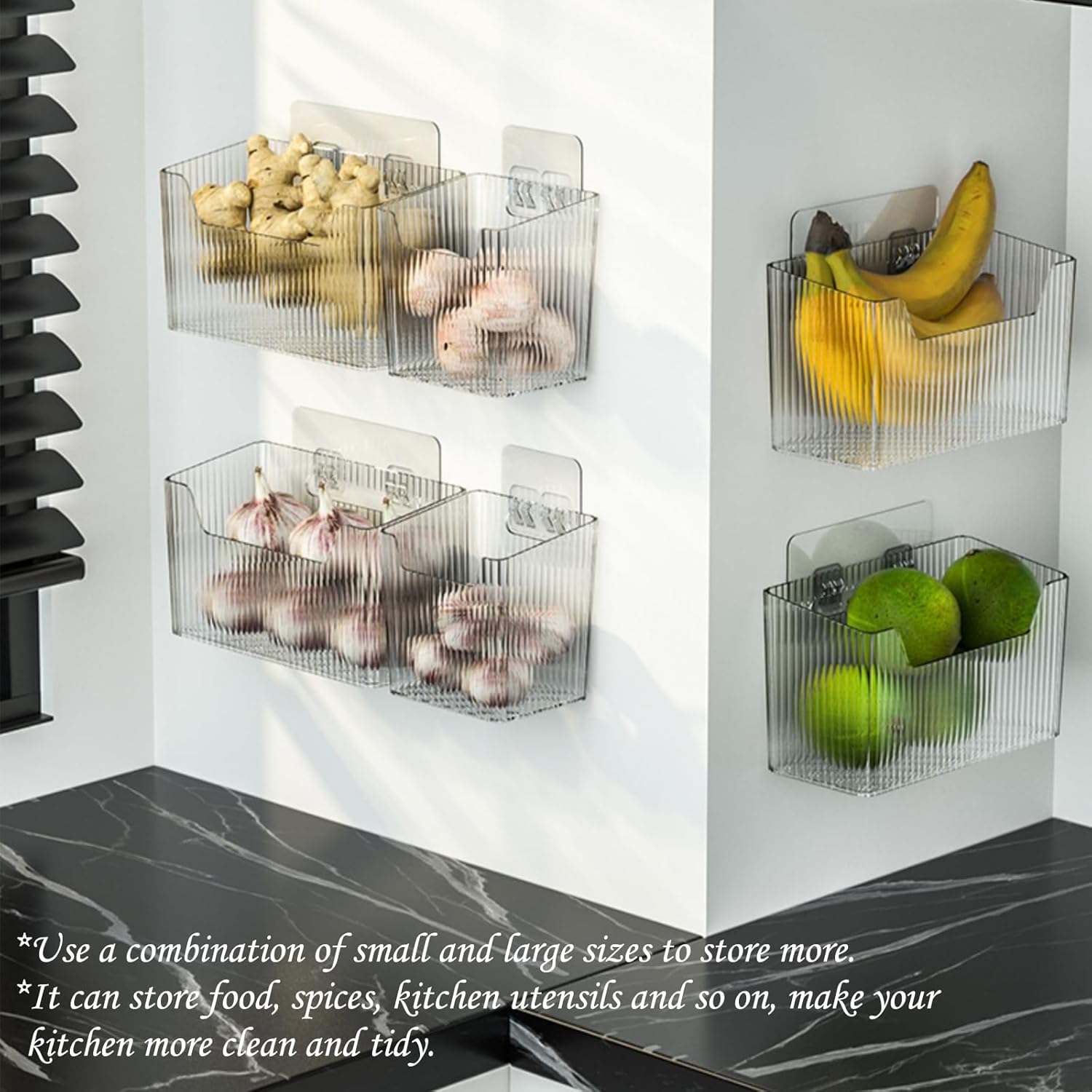 Set Of 2 Storage Organizer Bins Wall Mounted Shower Basket, Shower Caddy Stackable Clear Plastic Makeup Organizer Adhesive Hanging Bin for Bathroom, Kitchen, Cabinet, Pantry, BPA Free, Clear