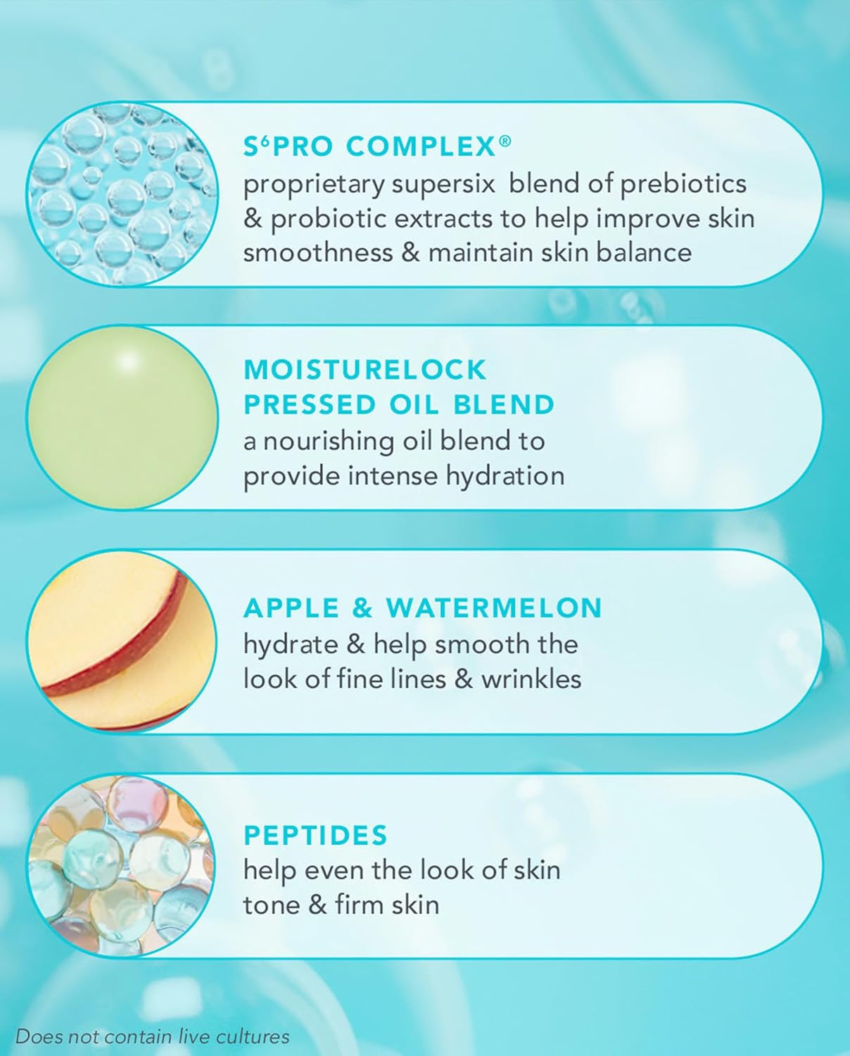 - Active Ingredients : s6pro complex, apple & watermelon, hyaluronic acid, squalane & collagen, moisturelock pressed oil blend, peptides, blueberry, hyaluronic_acid, lactic_acid s6pro complex, apple & watermelon, hyaluronic acid, squalane & collagen, moisturelock pressed oil blend, peptides, blueberry, hyaluronic_acid, lactic_acid