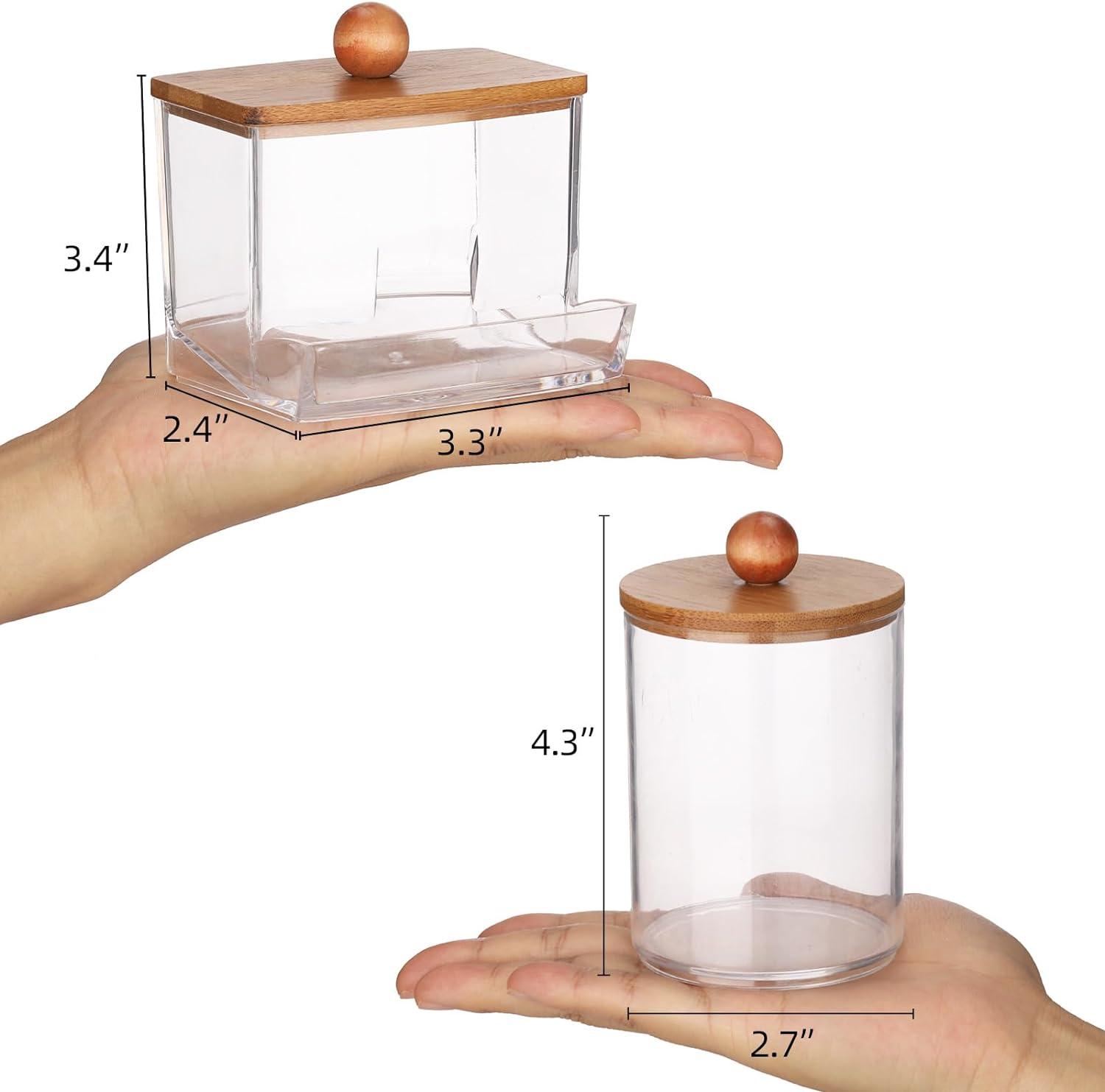 Tbestmax Qtips Holder Dispenser, 10/7 oz Cotton Ball/Swabs Storage Containers, Apothecary Jars for Bathroom Organizer Bambooo Lids