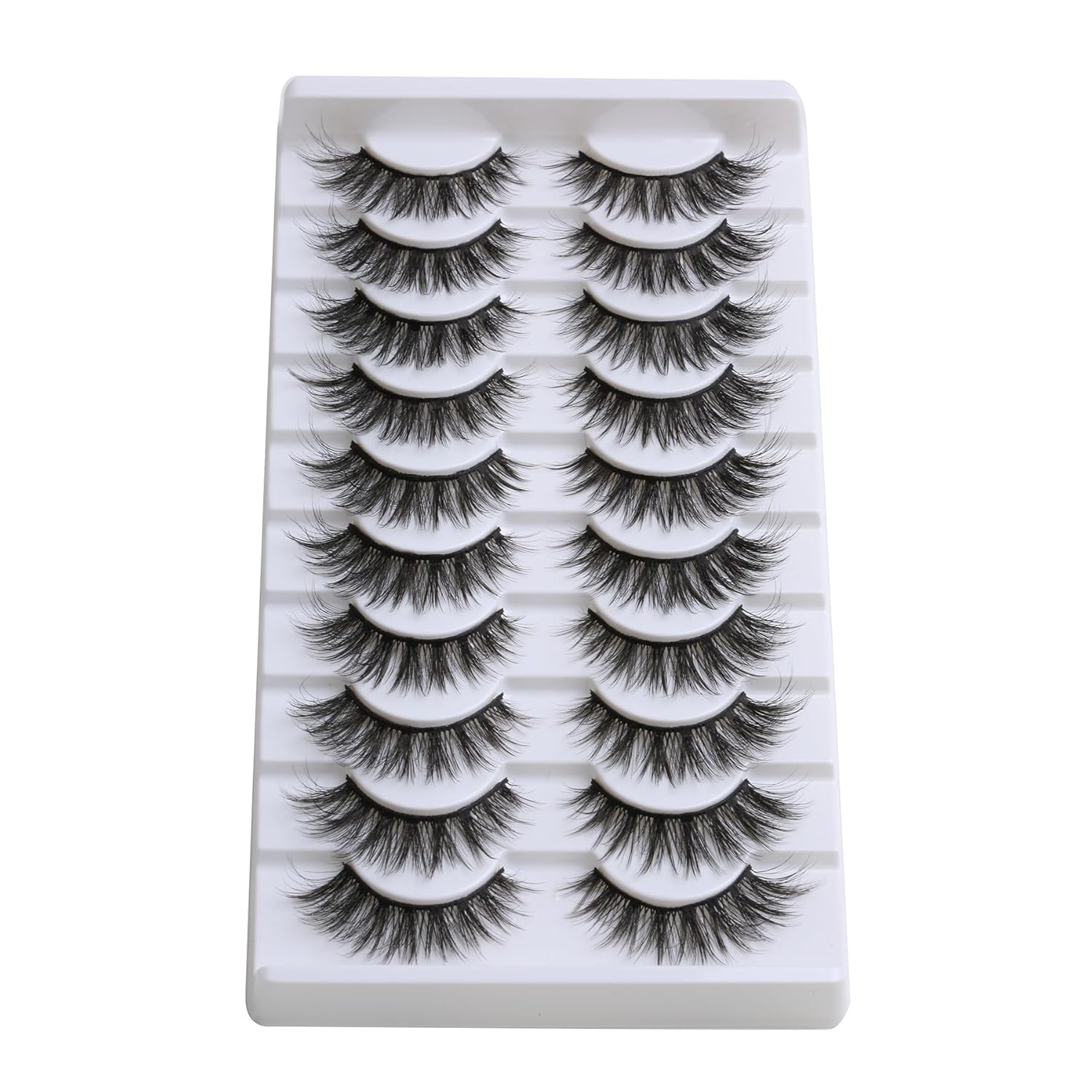 SUNWELL False Eyelashes 16mm Mink Lashes Cat Eye Lashes Strips 8D Fluffy Faux Mink Lashes Soft Wispy Luxury Volume Fake Lashes 10 Pairs Pack