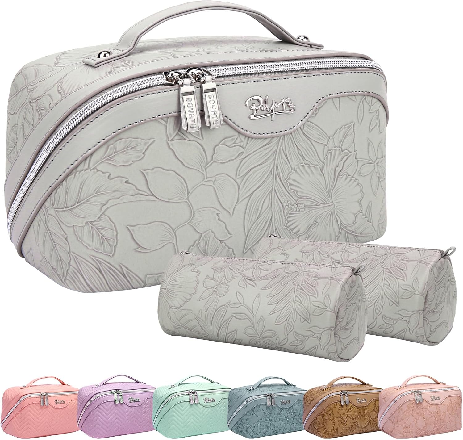 - Elegant Floral Makeup Organizer Bag: This women's cosmetic bag is made of high-quality PU leather, soft to the touch, waterproof and durable. Elegant appearance design will bring you countless awesome compliments. BOYATU portable travel cosmetic bag is a great choice and ideal companion for you.