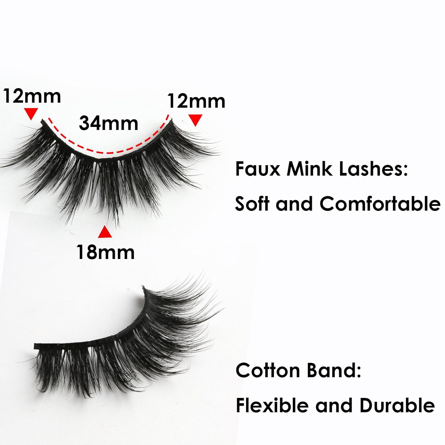 SUNWELL False Eyelashes 18mm Mink Lashes 8D Fluffy Faux Mink Lashes Strip Eye Lashes Soft Reusable Full Volume Fake Eyelashes 10 Pairs Pack