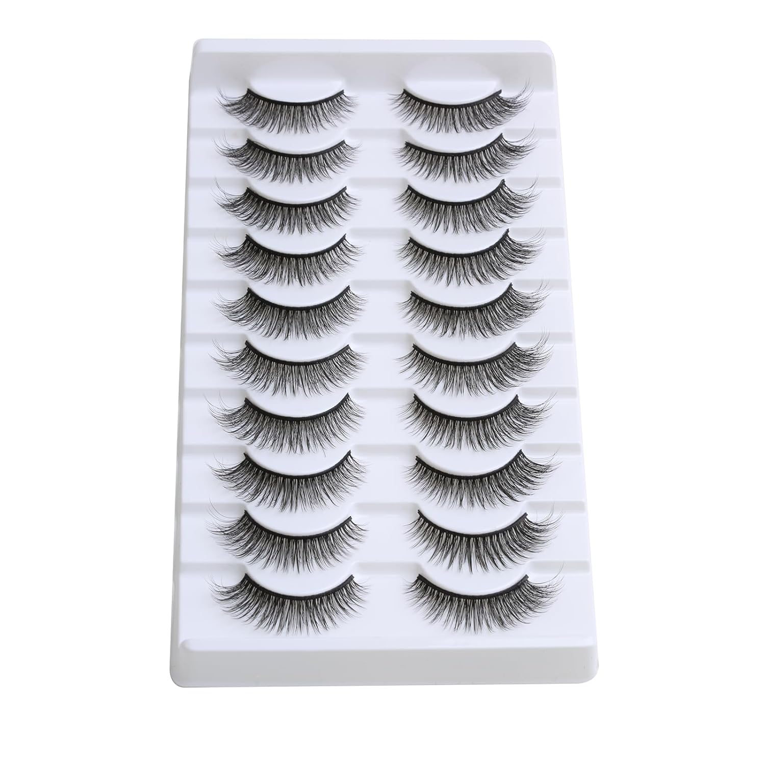 SUNWELL False Eyelashes 12mm Mink Lashes Natural Look Cat Eye Faux Mink Lashes 3D Fluffy Soft Luxury Volume Fake Eyelashes 10 Pairs Pack