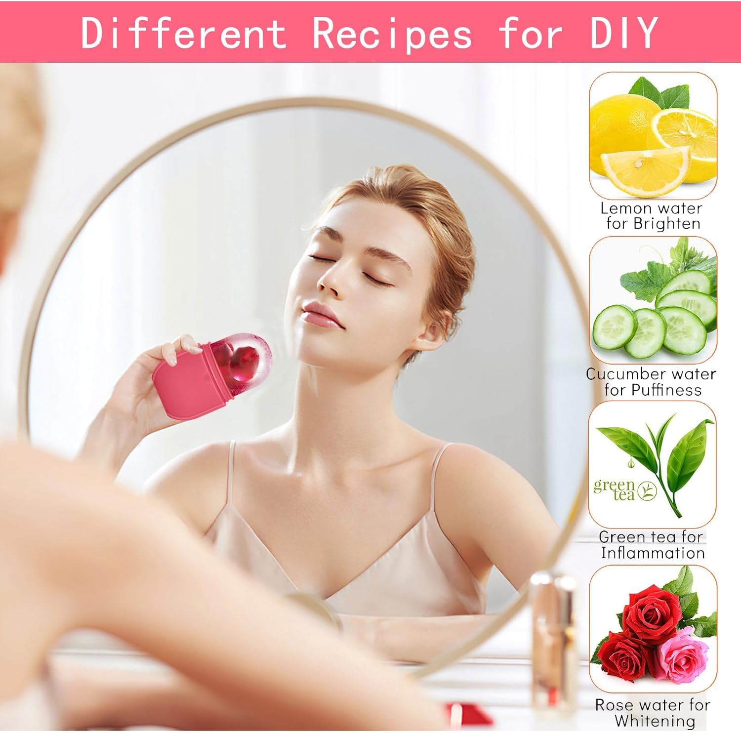 KOGITI Ice Mold for Face,Ice Roller for Face & Eye, Beauty Facial Ice Rollers Ice Holder Mold Face Puffiness Relief Massage Skin Care Tools, Ice Facial Cube (New-Pink)