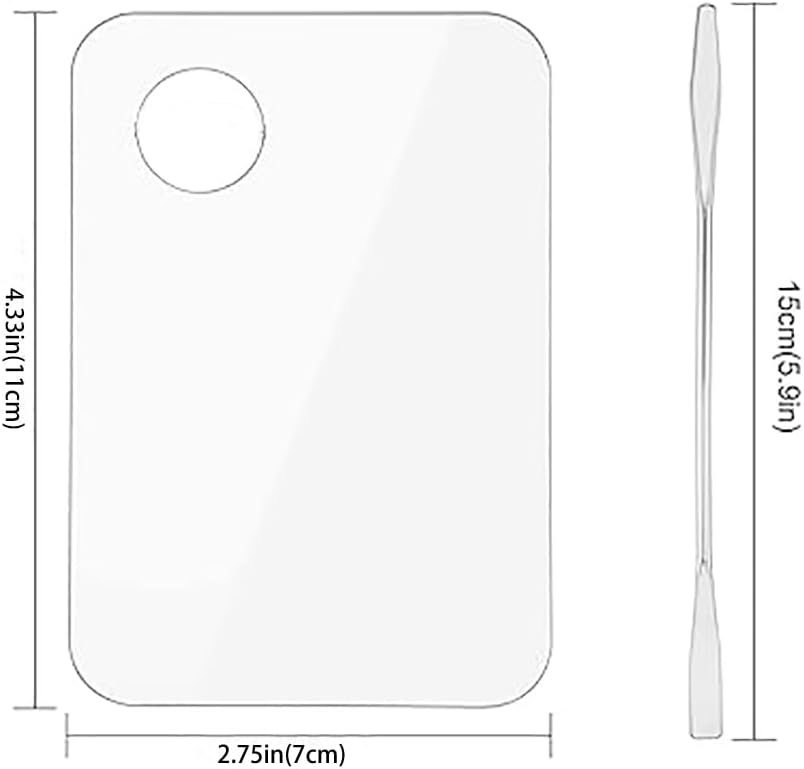 - Quality Material: The foundation mixing pigment set are made of acrylic, sturdy and lightweight, blunt edges, no rust, no deformation, with wet paper towels or water can be quickly cleaned up, the makeup spatula is made of stainless steel, double-ended design. There is a protective film on both sides of acrylic, please remove the protective film before use.