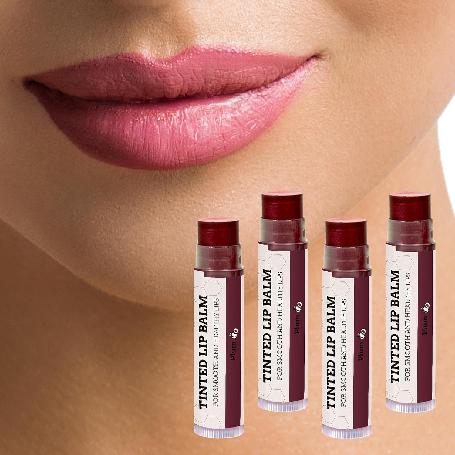 Earth's Daughter Tinted Lip Balm 4 Pack of Plum Color - Beeswax, Coconut Oil, Cocoa Butter, Vitamin E -Moisturize and Beautify, Paraben Free