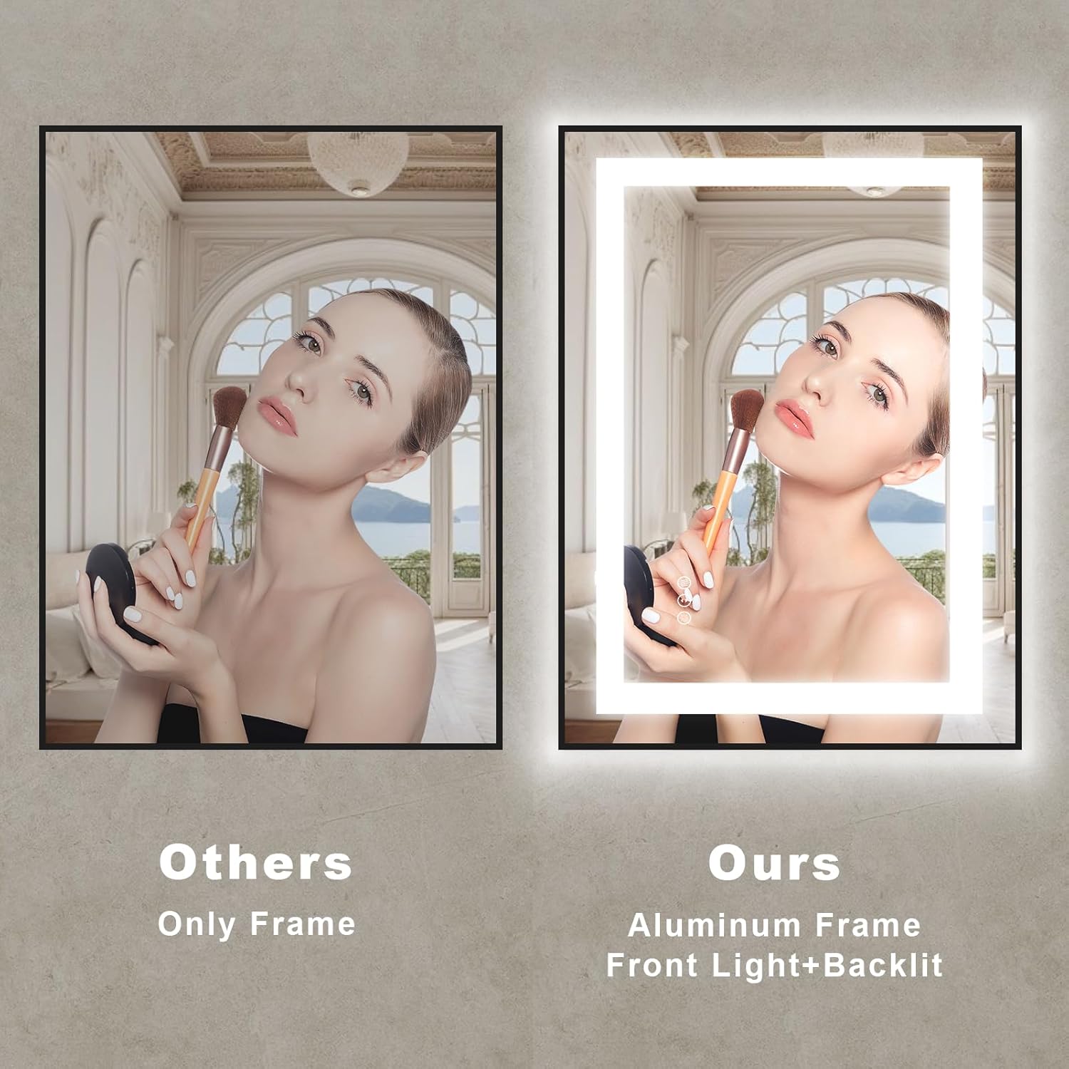 - 【Plug in/Wall Switch】Every lighted mirrors for bathroom wall comes with a standard US plug for immediate use. It can also be controlled by a wall switch, but we recommend hardwired installation by a professional electrician.