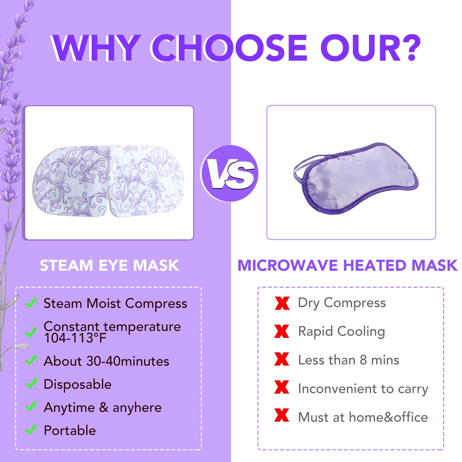 XPCARE 48 Pack Steam Eye Masks for Dry Eyes, Self Heated Steam Warm Eye Mask, Disposable Heated Eye Mask for Dark Circles, Puffy Eyes, Relief Stress Eye Fatigue(Lavender)