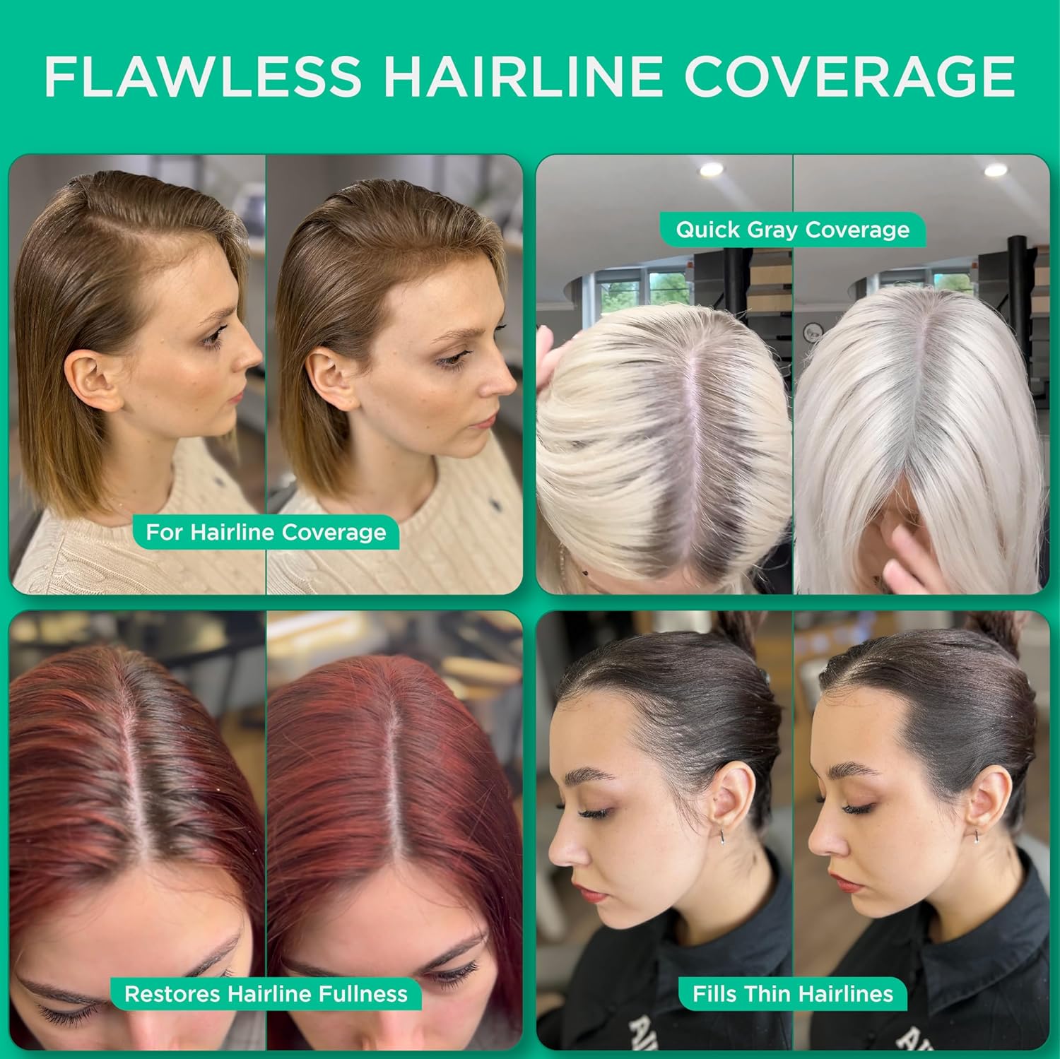 - Product Benefits : our temporary root touch-up powder, designed to conceal roots effortlessly. This innovative formula blends seamlessly with your natural hair color, providing instant coverage for grays and regrowth. The product comes with a convenient brush and sponge for easy application, allowing you to achieve a flawless finish in just minutes.n our temporary root touch-up powder, designed to conceal roots effortlessly. This innovative formula blends seamlessly with your natural hair color, providing instant… See more