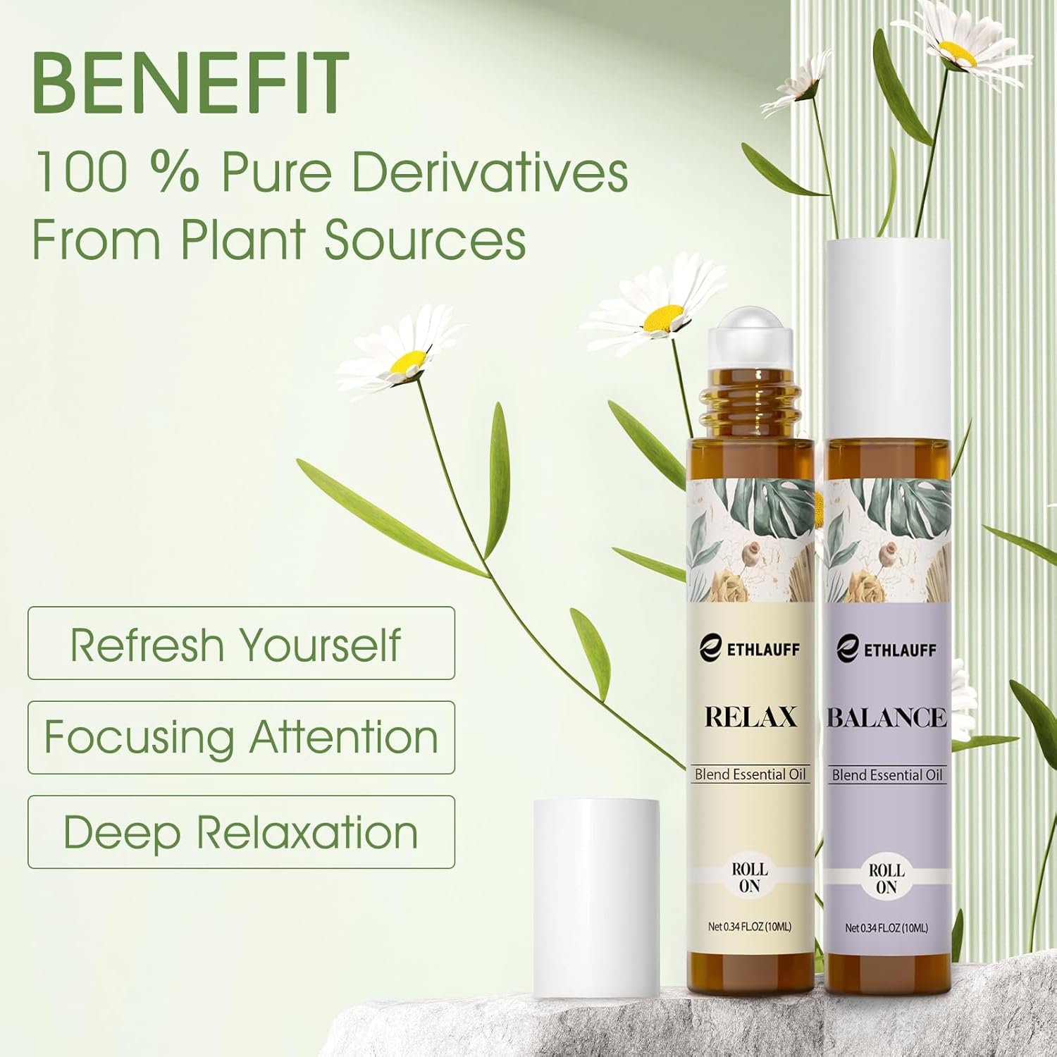 - Skin-friendly essential oils: Our roller ball essential oil is very skin-friendly and has good fluidity. Just rub it gently on your wrist to quickly spread the essential oil. 100% Pure Derivatives From Plant Sources.Contains natural carrier oils. Apply to wrists, chest, temples, palms, soles of feet and behind ears.FOR EXTERNAL USE ONLY !