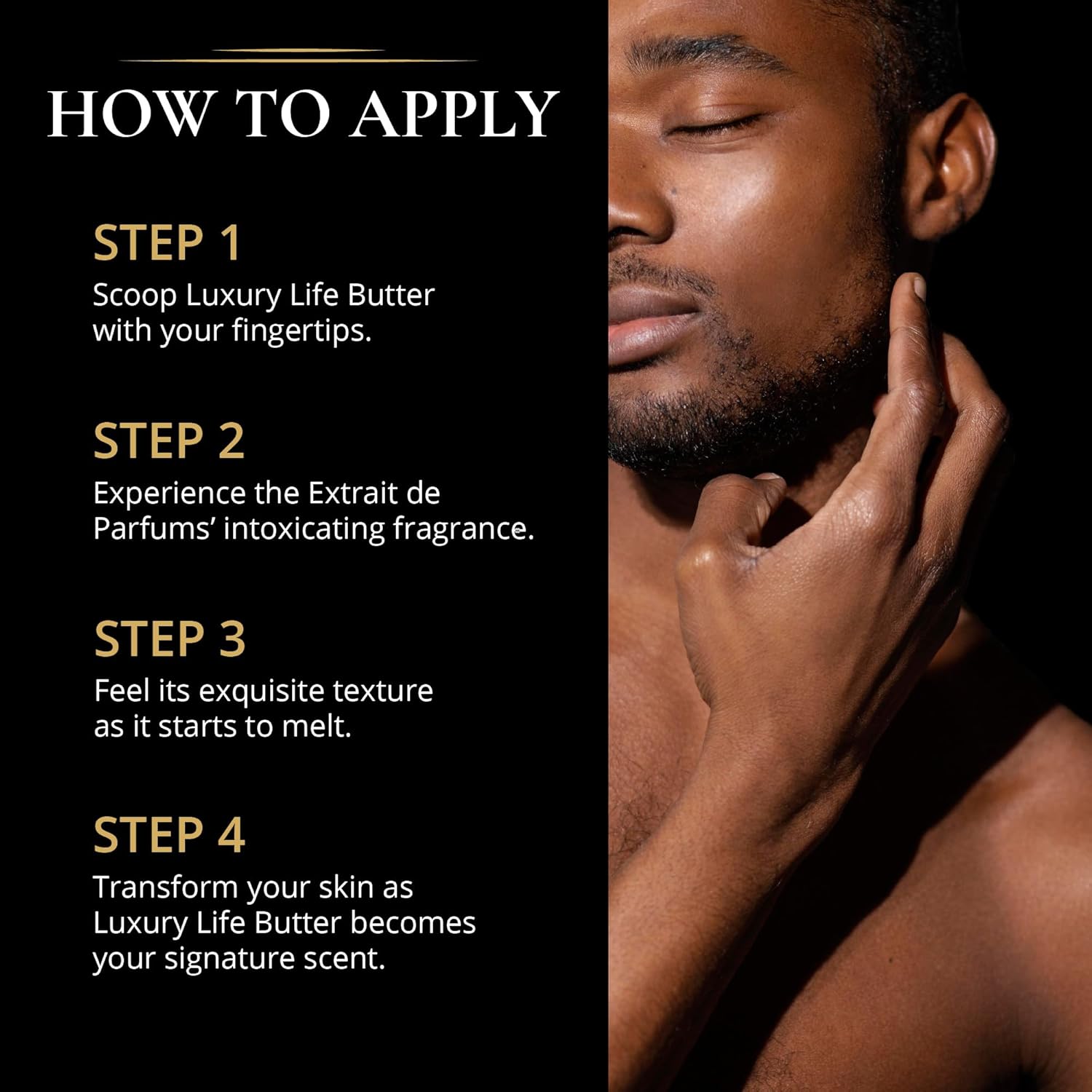 - LUXURIOUS SCENT: Now with an even longer lasting irresistible scent, this butter will become a replacement for your favorite everyday fragrance. Made with a unique combination of natural oils and without harsh alcohols or chemicals, Presidential is suitable for all skin types and is safe for sensitive skin. Feel Good, Smell Good, Live Good: Set yourself apart with Luxury Life.
