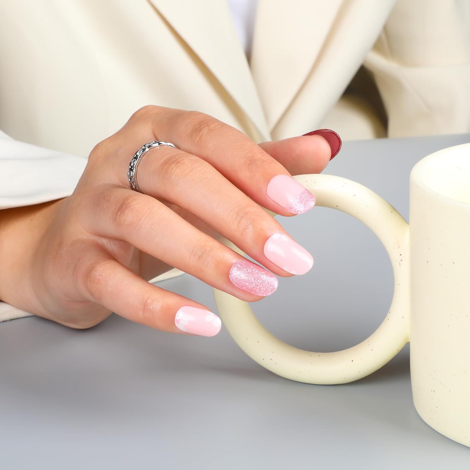 Semi Cured Gel Nail Strips, 30pcs Gel Nail Wraps, Salon-Quality, Easy to Apply, 2 Weeks Long Lasting (Shiny Rosy Radiance)