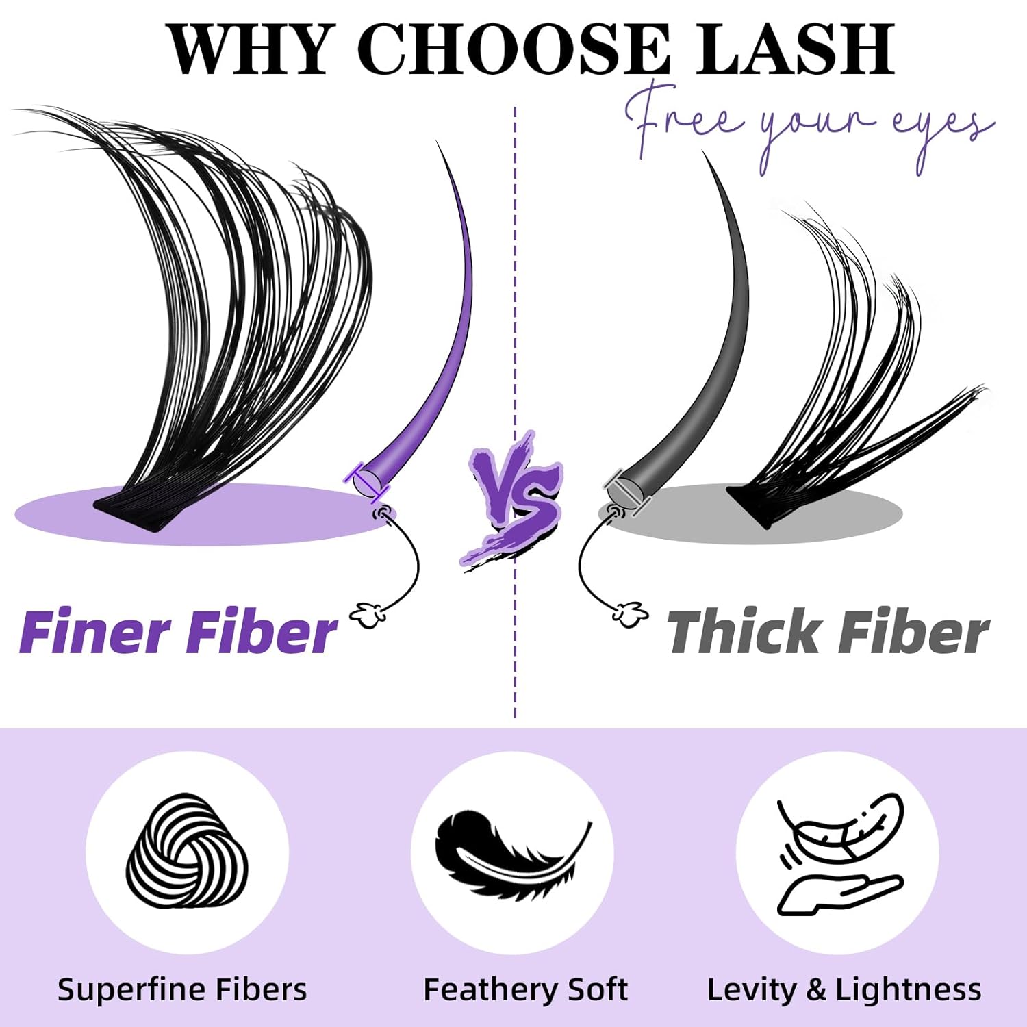 - 【Suitable to Wear】: Use a tweezer to pinch the band of cluster eyelashes and apply lash clusters below your natural lashes. You can barely feel the cluster lashes. The bottom of the clusters is flat and hardly noticeable. The lash band part will not stab your eyelid area when you blink. Bring you a perfect experience during lash application.