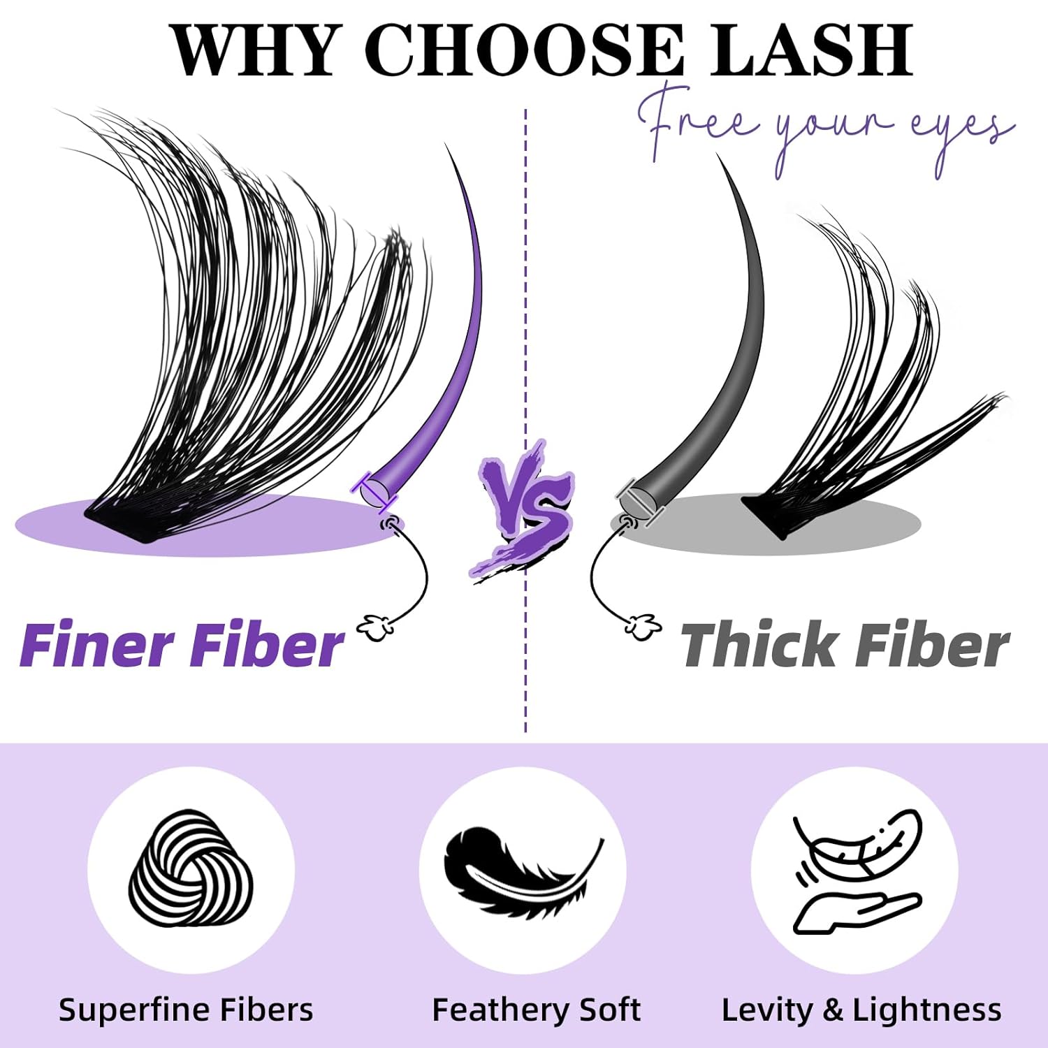 - 【Suitable to Wear】: Use a tweezer to pinch the band of cluster eyelashes and apply lash clusters below your natural lashes. You can barely feel the cluster lashes. The bottom of the clusters is flat and hardly noticeable. The lash band part will not stab your eyelid area when you blink. Bring you a perfect experience during lash application.