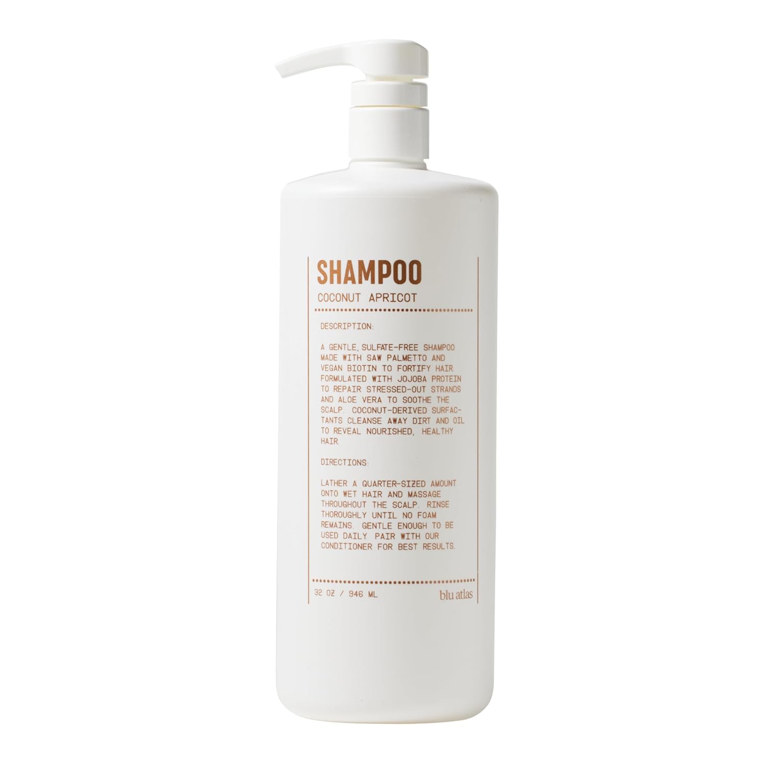 Blu Atlas Men's Natural Shampoo – Organic, Sulfate-Free, Paraben-Free – Deep Cleansing & Hydrating – Coconut Apricot Scent – Made in America – 32 oz