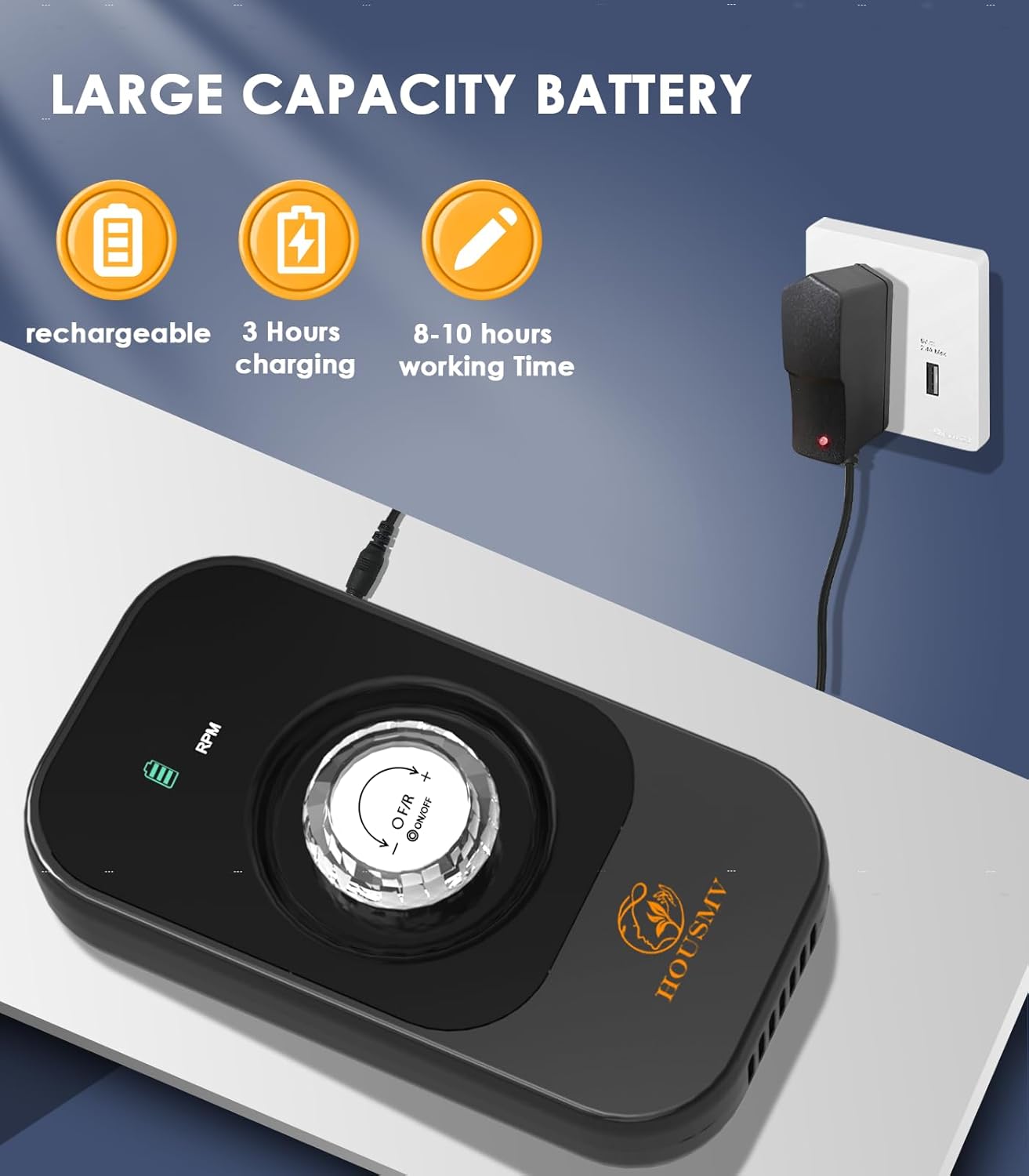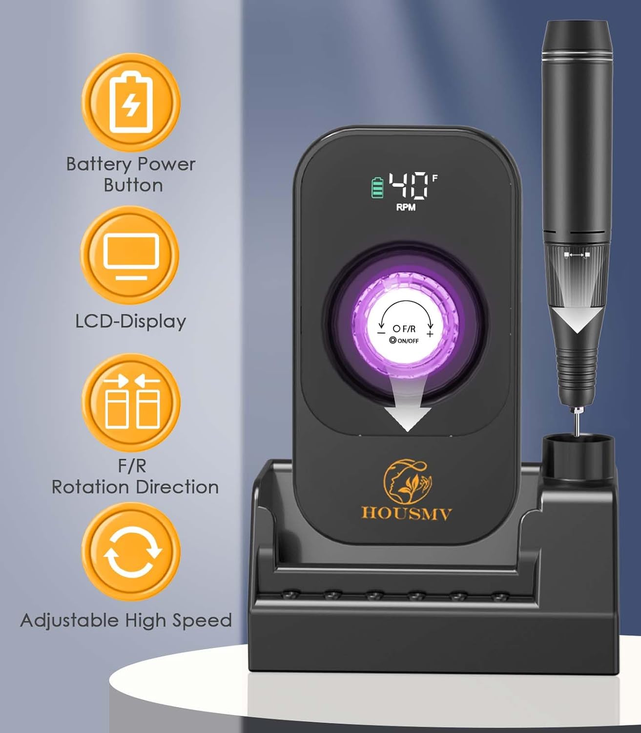 - 𝐋𝐨𝐧𝐠-𝐥𝐚𝐬𝐭𝐢𝐧𝐠 𝐁𝐚𝐭𝐭𝐞𝐫𝐲 𝐋𝐢𝐟𝐞: Our rechargeable nail drill features a large capacity battery, which offers 8-10 hours of usage just on 3 hours charge. The well-designed intelligent LCD display shows the rotation direction, speed, and remaining battery level, allowing you to conveniently adjust the speed and stay informed about the battery status.