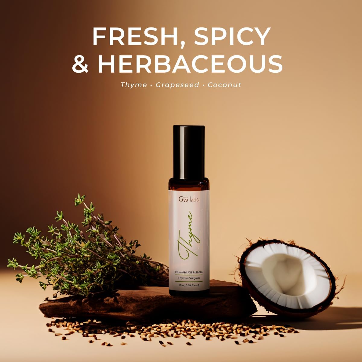 Gya Labs Thyme Essential Oil Blends Roll on for Skin - Natural Thyme Oil Roller, Fresh Herbaceous Scent - Natural Aromatherapy, Travel Size (0.34 Fl Oz)