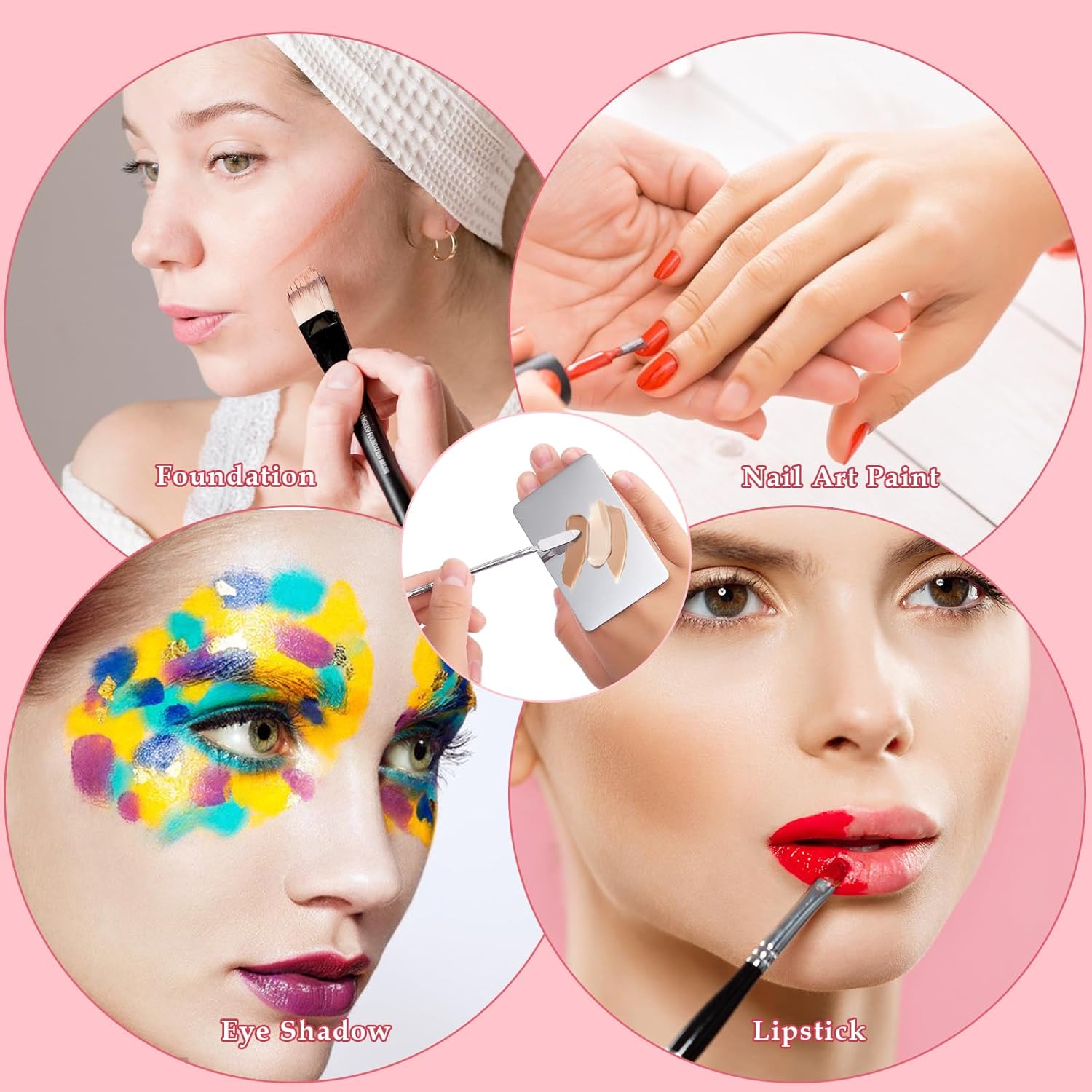 - Multi-purpose: The multi-purpose makeup mixing tray is suitable for mixing various cosmetics,such as foundation,concealer,lipstick and eye shadow,It is also suitable for nail art and art pigment coloring.