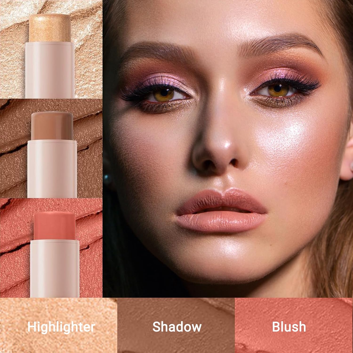 - 【3 Pcs Contour Kit】This makeup kit comes fully equipped, including a contour stick, highlighter stick, blush stick, and a premium soft contour brush, sponge for blending stick creams. This kit is easy to sculpt your face and add a warm, healthy, glowing natural look complexion to your skin.