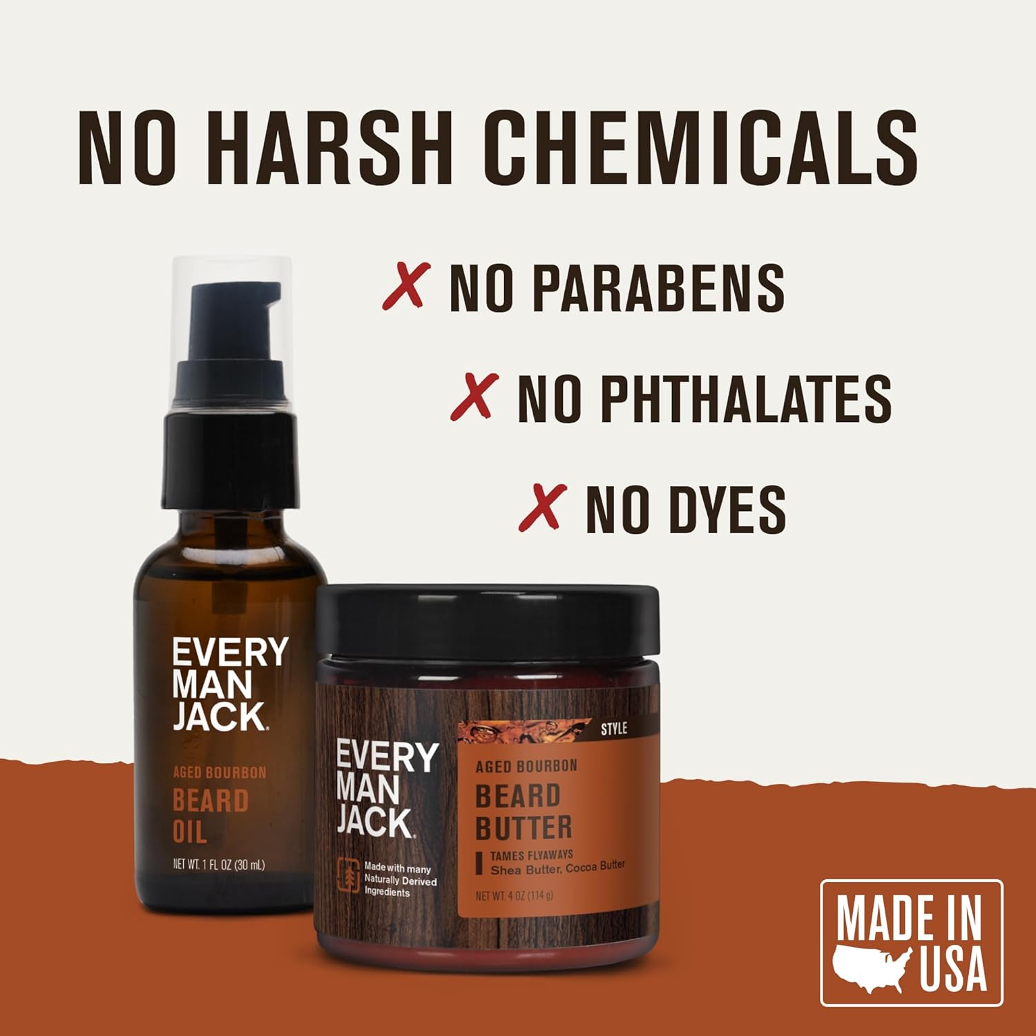 - NATURALLY DERIVED INGREDIENTS: Rub in our beard oil blend of Naturally Derived Vitamin E, Argan, and Borage to soften, nourish, and finish with a healthy shine. Our Beard Butter combines Shea and Cocoa Butter to bring silky smoothness to flyaways and frizz