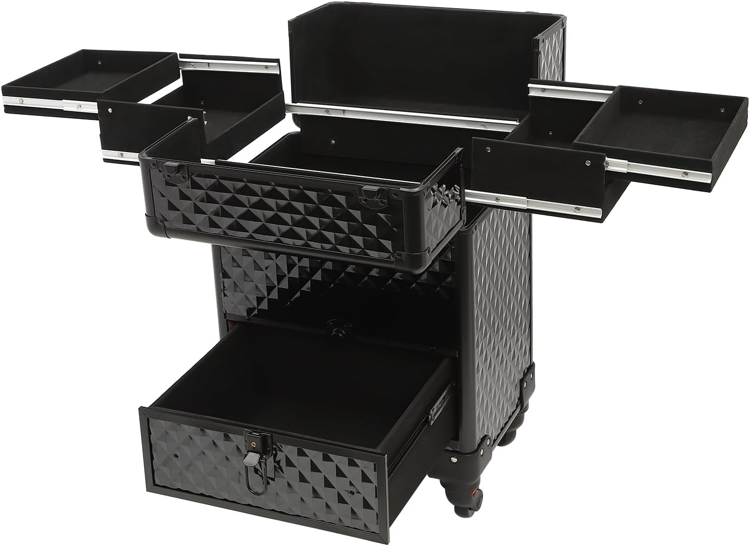 - Wide Application: This rolling makeup train case can be widely used by hair stylists, pet groomers, makeup artists, and so on for storing scissors, makeup, jewelry, combs, and other items. In addition, it is also very suitable for you to store tools or daily necessities when you go out.