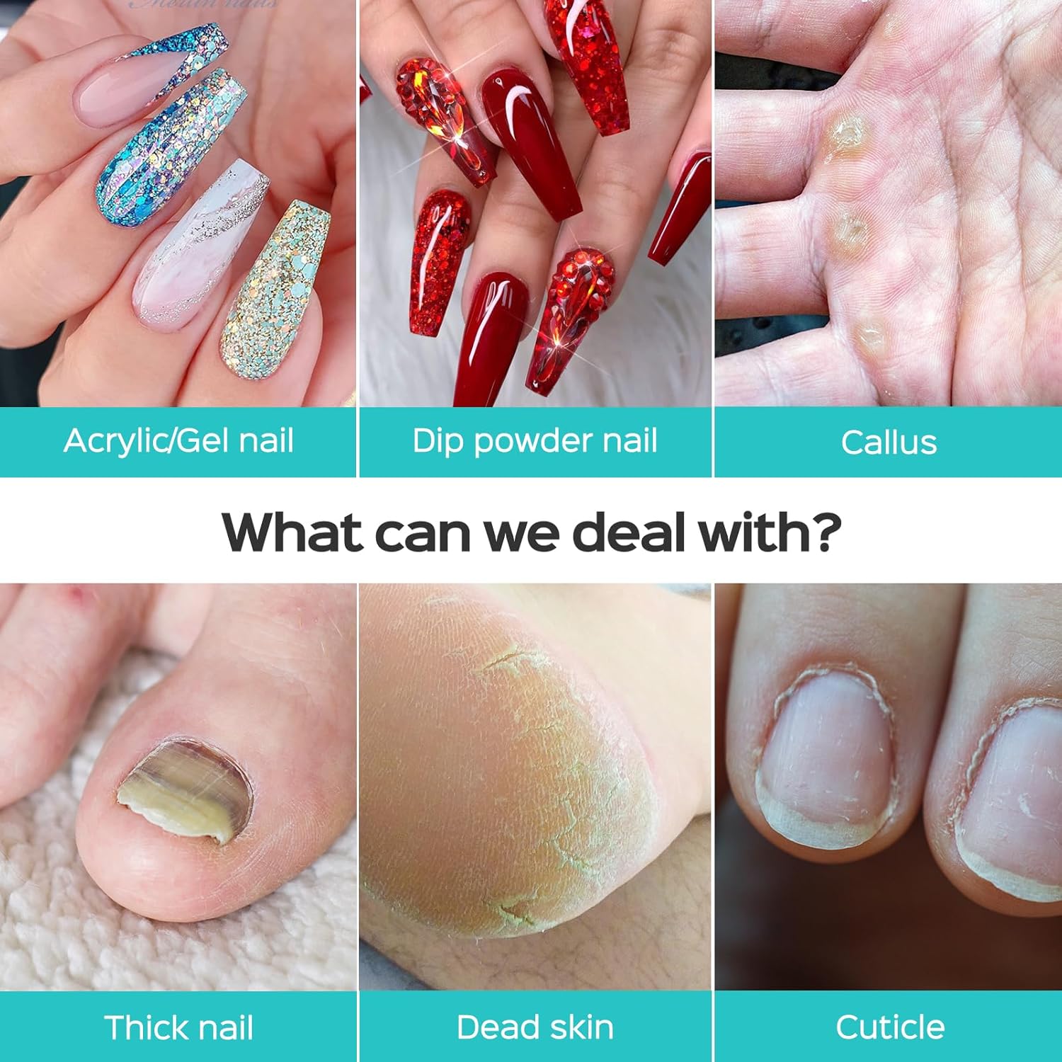 - Multifunctional & Easy to Use: This wireless electric nail drill is not only suitable for acrylic nails, gel nails, dip powder and natural nails, but also can remove cuticles, dead skin, thick nails and calluses. It is about nail health and improving personal image.The stepless speed adjustment method can be accurately and easily applied to various manicure and pedicure procedures, and beginners can also enjoy it at home