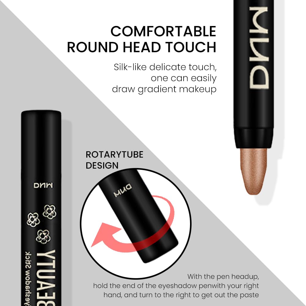 - ❤️【Silky & Conveniently】Goes on smoothly like silk without clumping,skipping or smudging,perfect for sculpting, shading & defining,not exaggerated glittery.Thick-end eyeshadow crayon for quick-applying on large area,portable and let you to make up & touch up outside so easy.