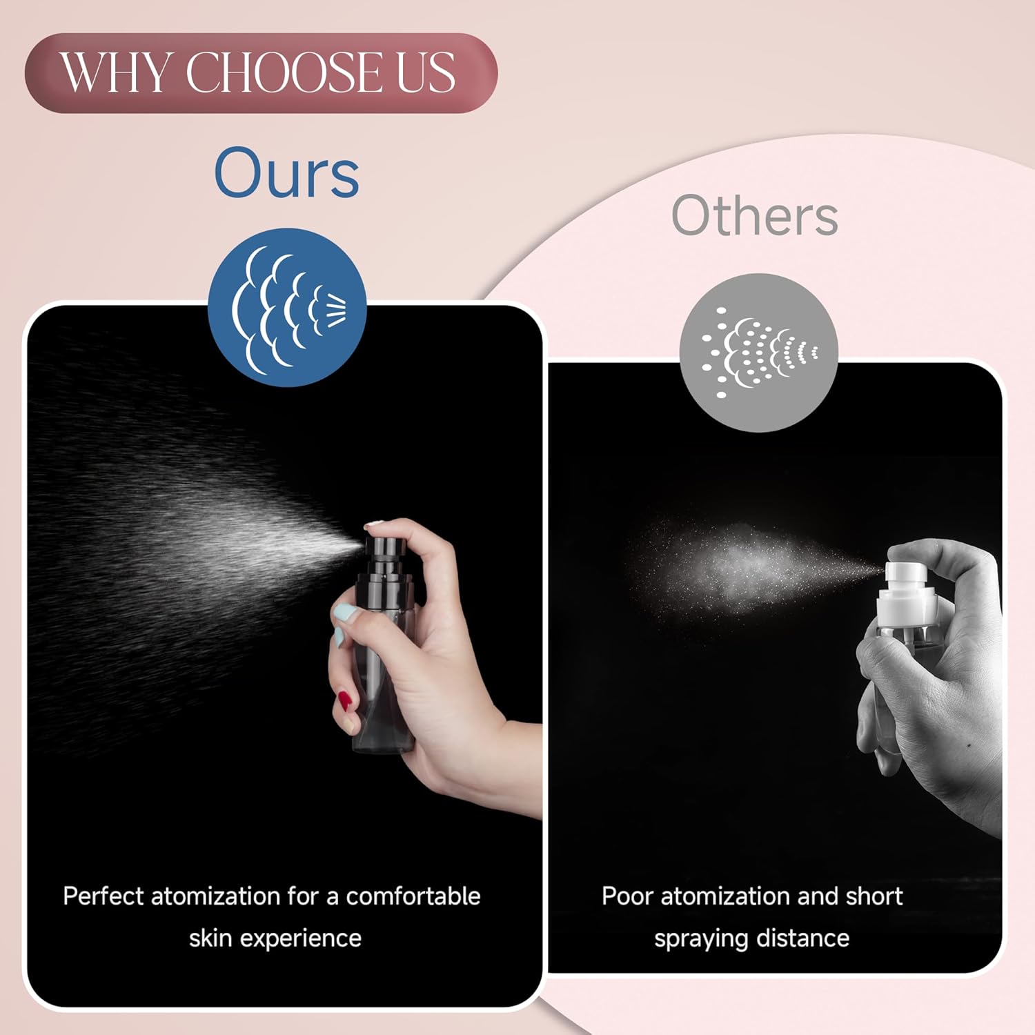 - 【FINE MIST SPRAY】Our travel spray bottles has a unique wide flat head design, which ensures that each spray is fine and silky, evenly covering every inch of skin or surface, bringing you unprecedented comfort and perfect enjoyment.
