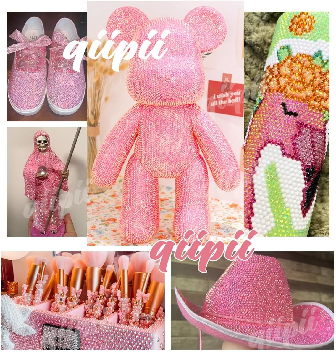 - ❤【4 Boxes Packs Resin Jelly Rhinestones w Glue for Crafting】Light Hot Pink AB Jelly Rhinestones:1 Box 3mm SS10, 1 Box 4mm SS16, 1 Box 5mm SS20, 1 Box 6mm SS30, Flatback Rose Pink AB Resin Stones Bulk. B7000 glue has strong adhesion and dries clear. The glue has a precision needle for easy application, initial cure time is 3-5 minutes and full cure time is 24 hours. The glue will have a slight overflow when first used, before use you can leave the glue head up for a few minutes to avoid overflow.