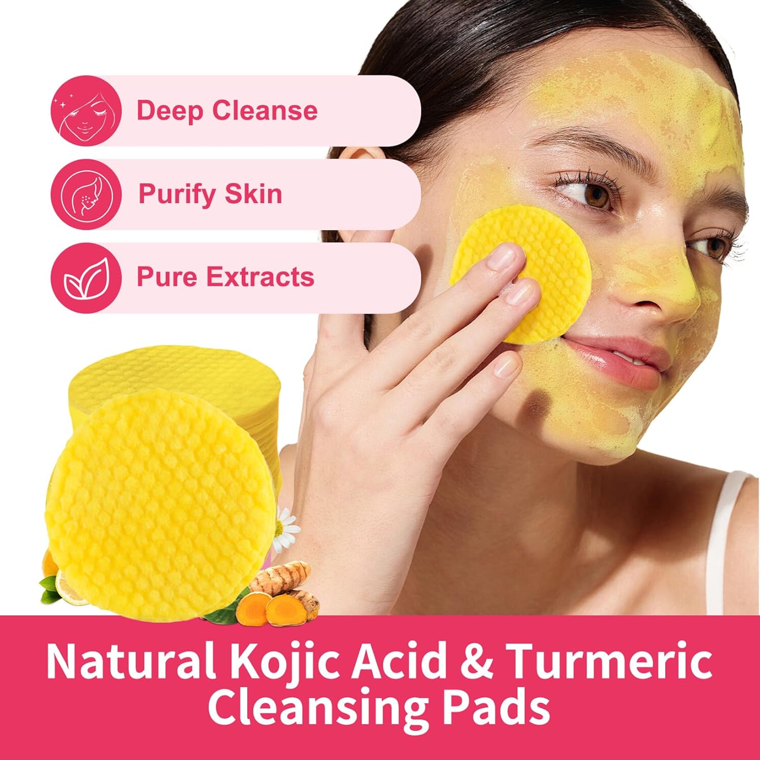 - Natural Ingredients: The turmeric kojic acid pads are made from natural skin-friendly cotton sheets and contain turmeric, chamomile, lemon, etc. Gentle and safe for face cleansing.