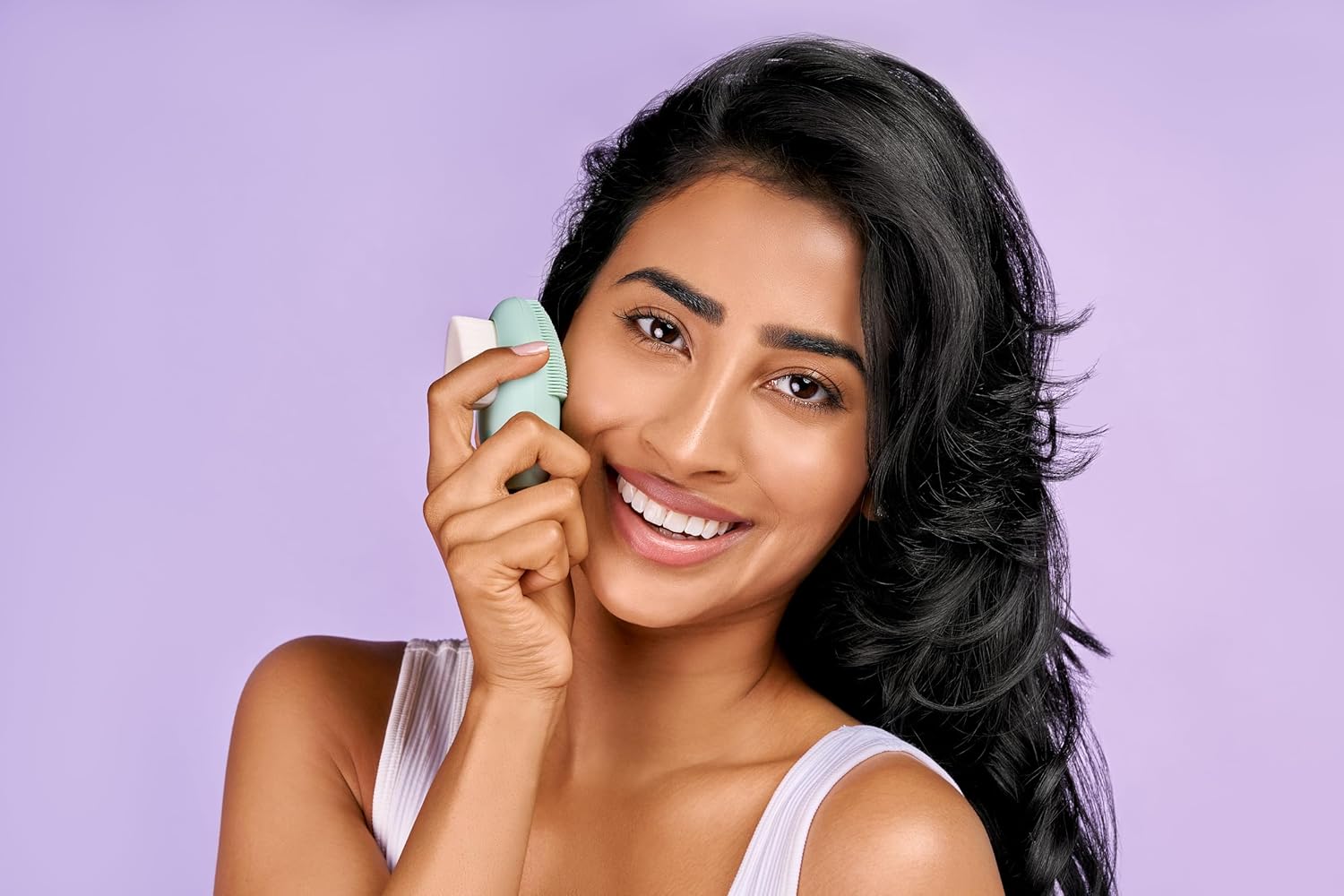 - GENTLE EXFOLIATION FOR RADIANT SKIN: The silicone bristle side provides controlled exfoliation that removes impurities and surface buildup without causing redness or irritation. It helps reveal smoother-looking skin and enhances the effectiveness of your skincare products by creating a clean canvas. Unlike harsh scrubs, this brush is suitable for all skin types, including sensitive skin. Use it to help reduce dullness, refine texture, and refresh your complexion.