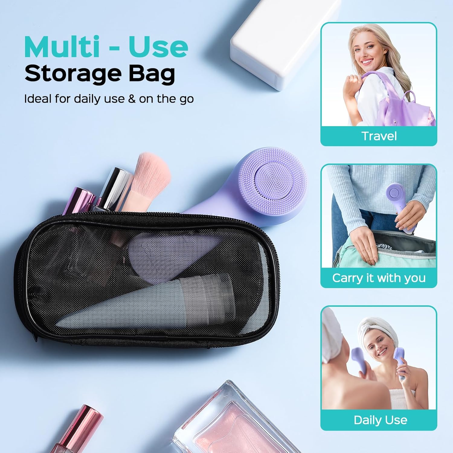 - Comes with a Storage Bag: The COSLUS silicone face scrubber has a practical mesh storage bag, allowing you to store the silicone brush and small facial cleanser together easily. Ideal for daily care or travel-ready scrubber, this reusable storage ensures your skincare essentials are always tidy and accessible, providing you with convenience and peace of mind wherever you go, while also protecting your device during transport. Very suitable Provide for your lover, boyfriend, or girlfriend