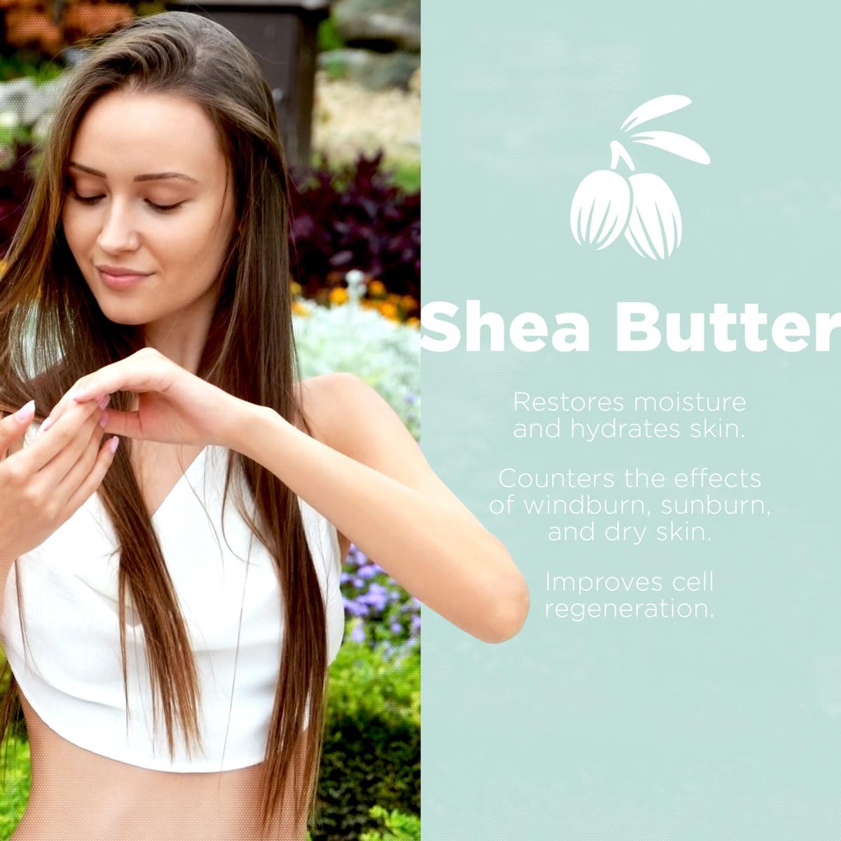 - Promotes Soothing Regeneration – This shea butter lotion for dry skin helps eliminate dryness and damage caused by windburn, sunburn, and general cracking and peeling by providing deeply-penetrating, long-lasting moisture retention.