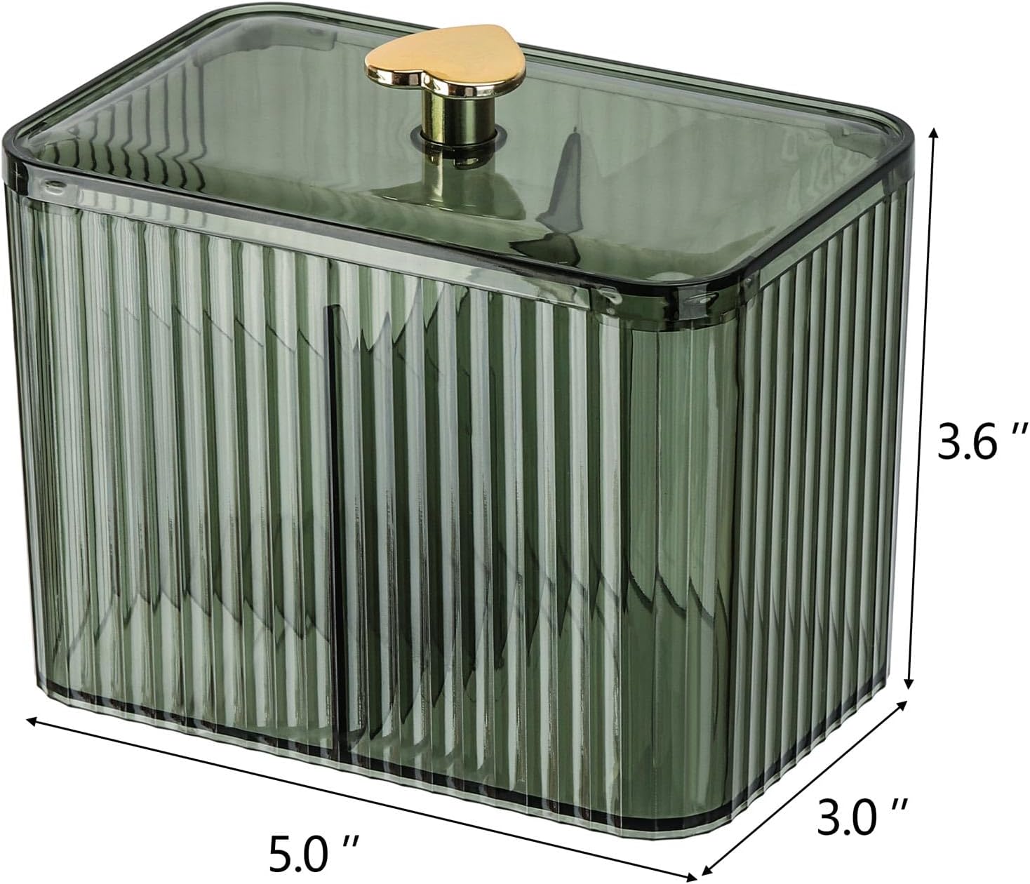 Tbestmax Qtip Holder Dispenser 3-Section Clear Bathroom Organizer Jar 3 Grids Cotton Swab/Pad/Ball Holder Container Cosmetics Storage for Vanity(2 Pack Green)