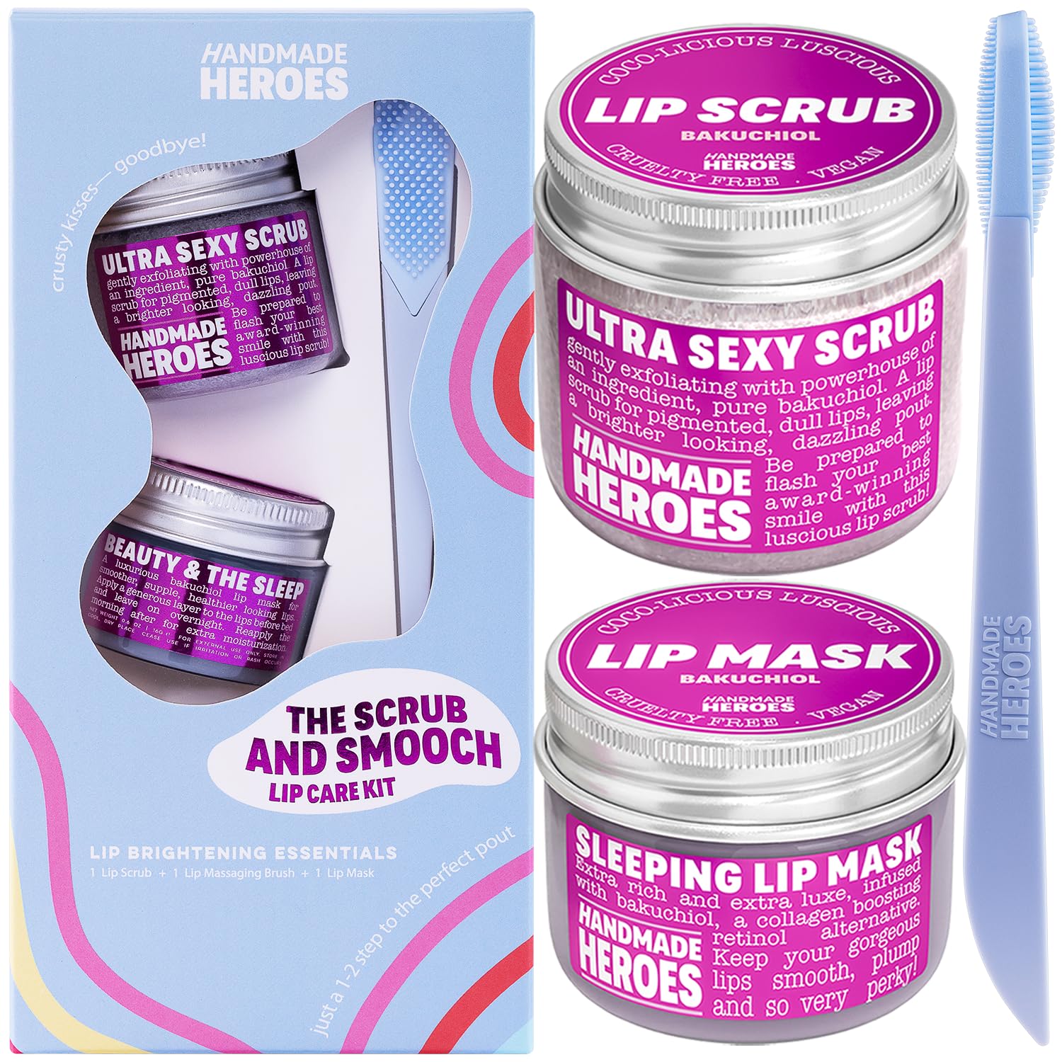 - HAPPINESS ALWAYS: Crafted with skin loving ingredients, made to delight. Don't love it? Let us know and we'll make it better. Our bakuchiol lip care set complete with a lip brush tool for brighter looking, even toned lips. Perfect for selfcare, beauty gifting, Valentines, Galentines & party favors