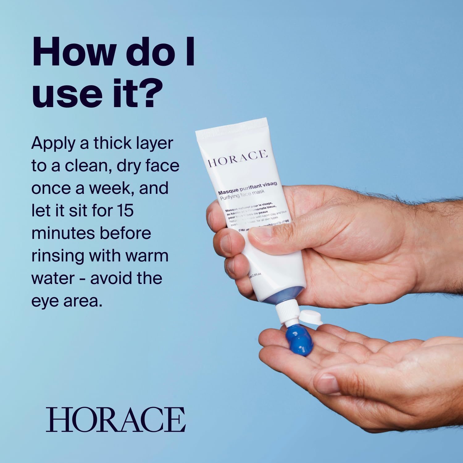 HORACE Purifying Face Mask for Men - Facial Deep Cleanse with Kaolin Clay and Blue Everlasting Flower - Pore Refining Skincare for All Skin Types - Unscented, 2.45 fl.oz