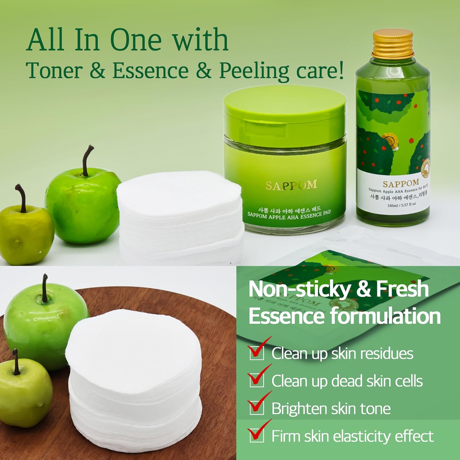 - Derived from eco-friendly apple, contains abundant 'Polyphenols', providing excellent antioxidant and skin moisturizing effects. Additionally, 'Ursolic acid' helps remove dead skin cells and improve skin tone.