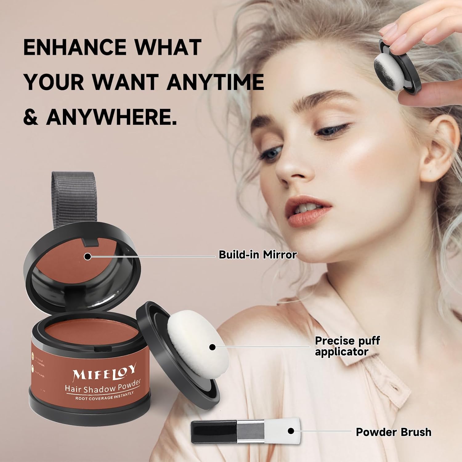 - Auburn Root Touch Up - Achieve a flawless, natural-looking hairline with our specialized Mifeloy hairline powder. Designed to seamlessly blend with your natural hair, this hair powder enhances the vibrancy of your hair color, making it look fresh and undetectable. Perfect for daily grooming, it’s available in a variety of shades to match your unique hair color. Enjoy confidence in every strand with this ultimate solution for touch-ups and thinning hair.