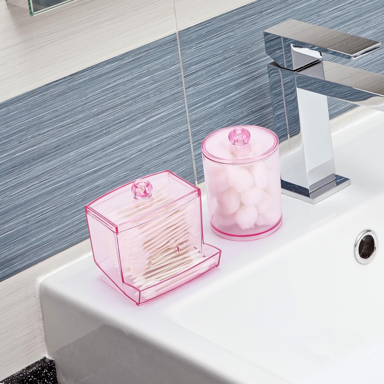 - Bigger than Before - Compared to the previous one, this one is bigger, 1pcs Qtip Dispenser - 10oz , 1pcs Cotton Ball Holder - 12oz. Putting&Picking cotton swabs more easier