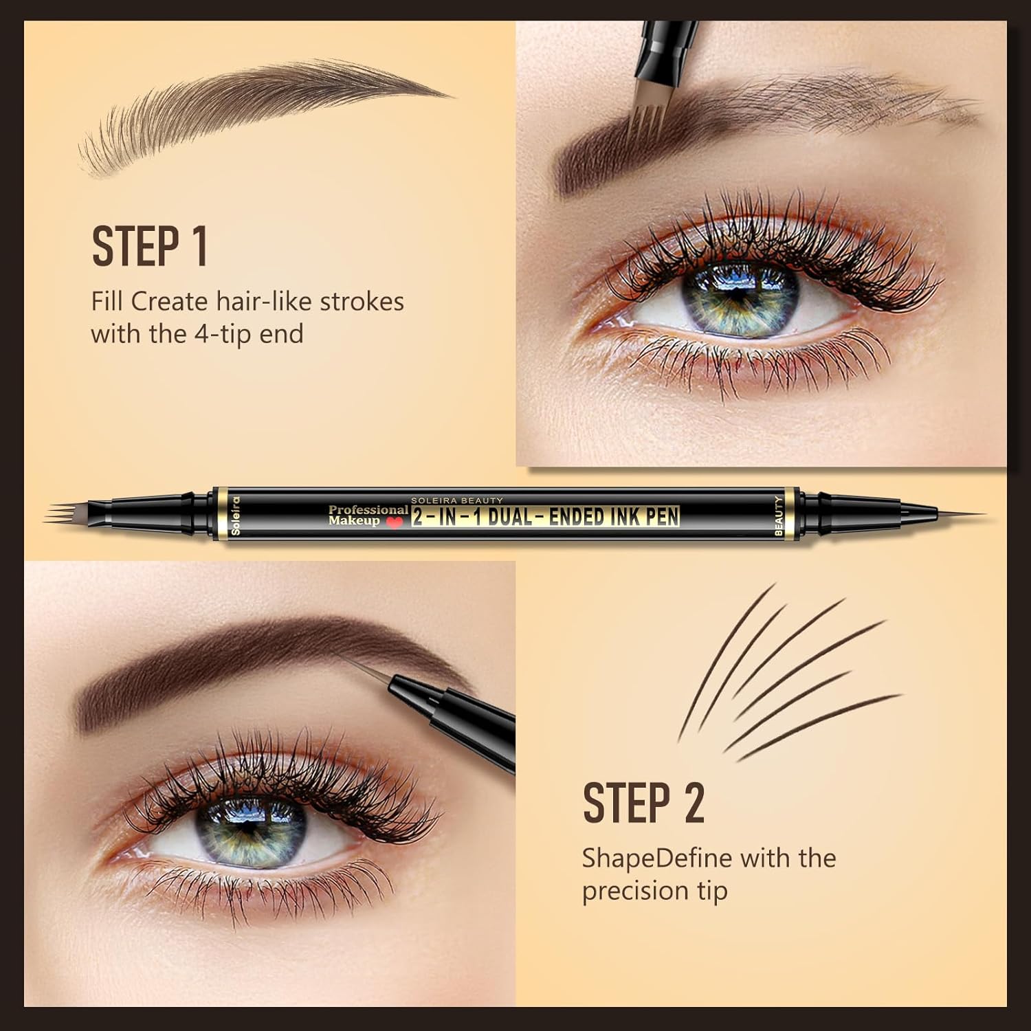- Create 3D Natural Brows: The 4-tip hair-like brow pen effortlessly mimics real brow hairs, blending color into sparse areas for a full, dimensional look. Ideal for those seeking natural, yet defined brows with a microblading effect