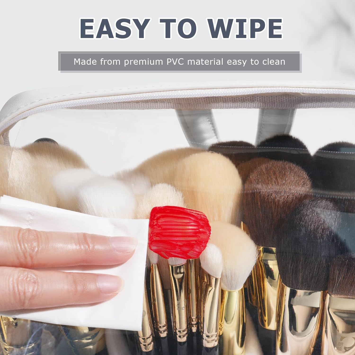 • High-quality Material: This Makeup Brush Bag choose high-quality waterproof fabric and visual TPU material. Make this makeup brush bucket bag not only waterproof and easy to clean, easy to find items, but also do not have to worry about long-term use will make it wrinkle and damaged.