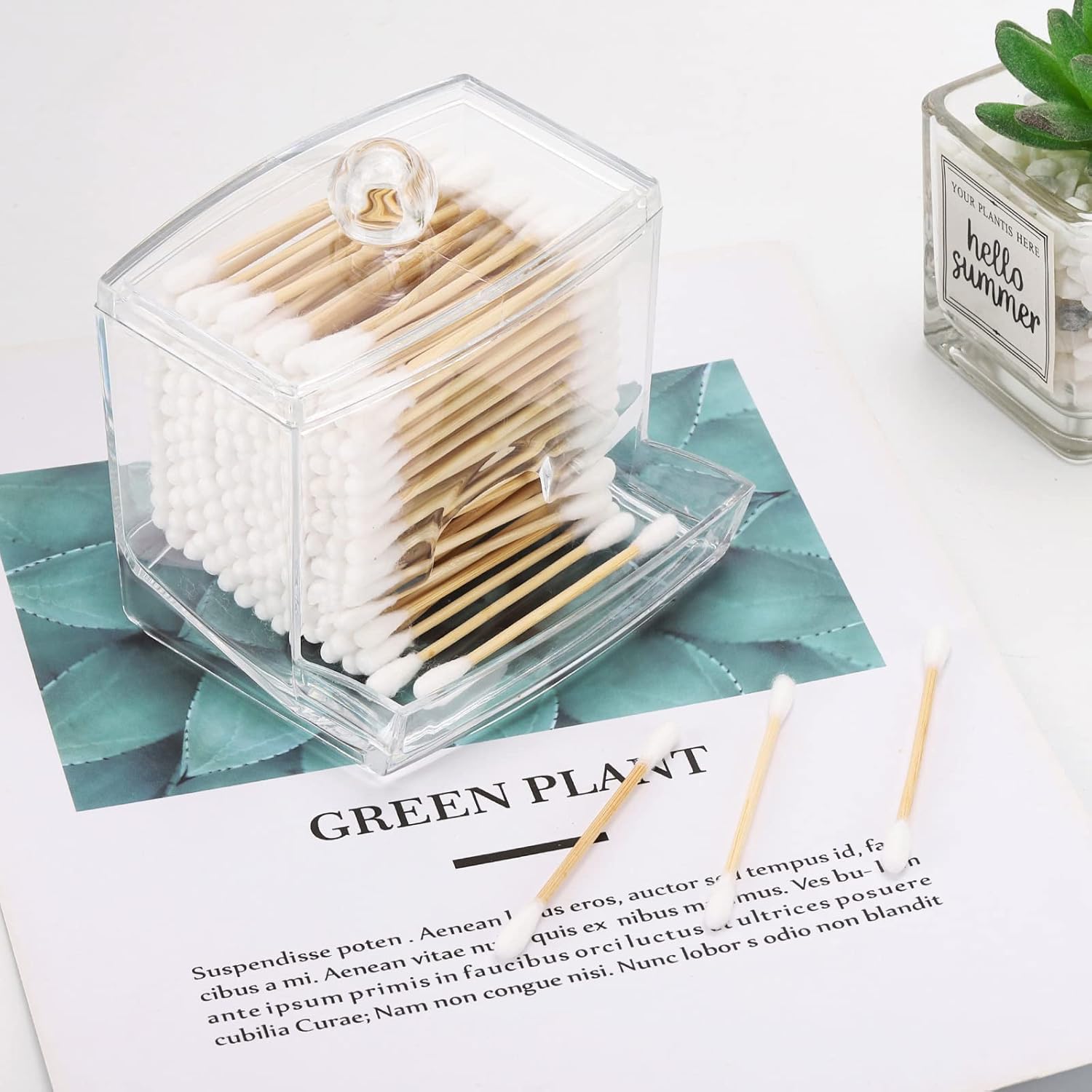 Tbestmax 2 Pack 10oz Qtip Dispenser Big Clear Qtip Holder, Bathroom Container Organizer Accessories Decor for Storage-Qtips Cotton Ball