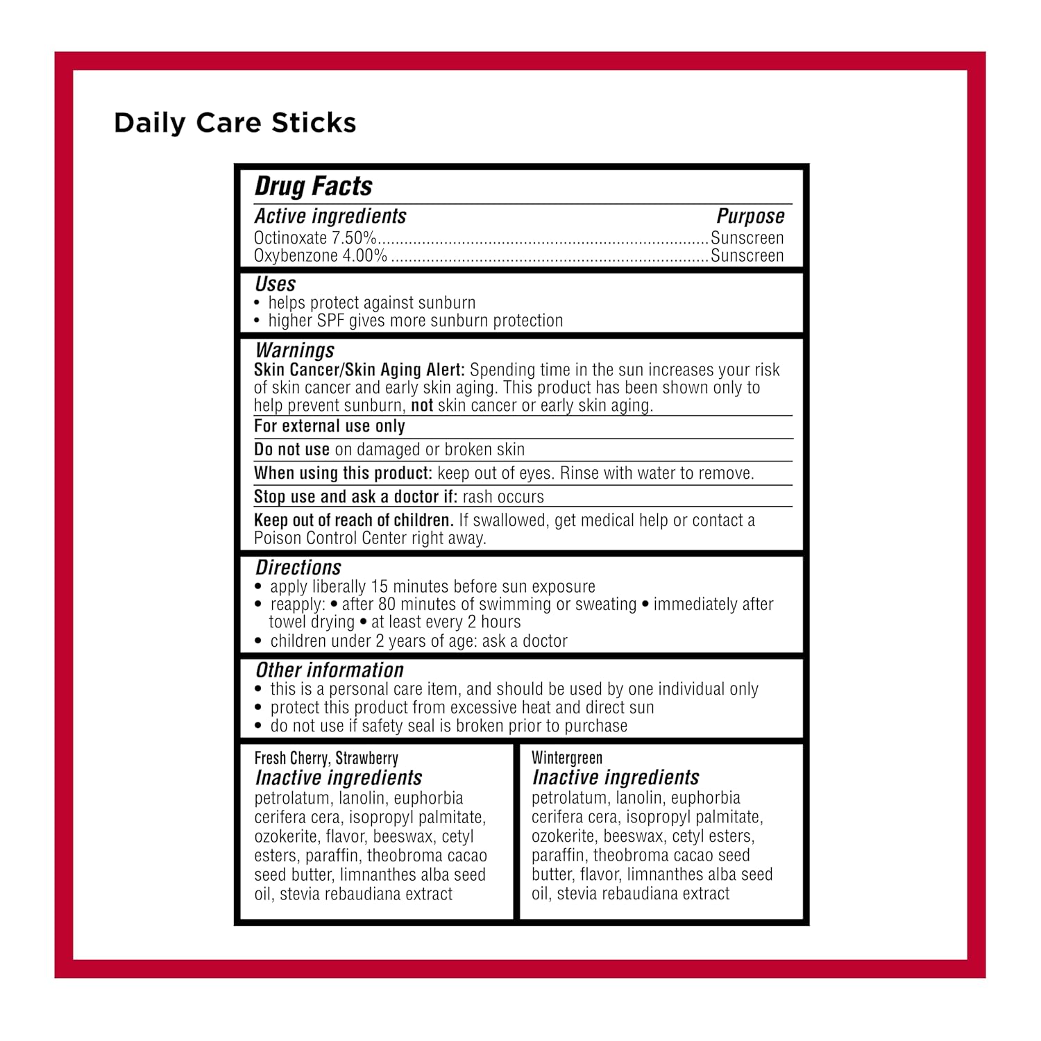 - Carmex Daily Care Lip Balm with SPF 15 that helps provide everyday sun protection for your lips