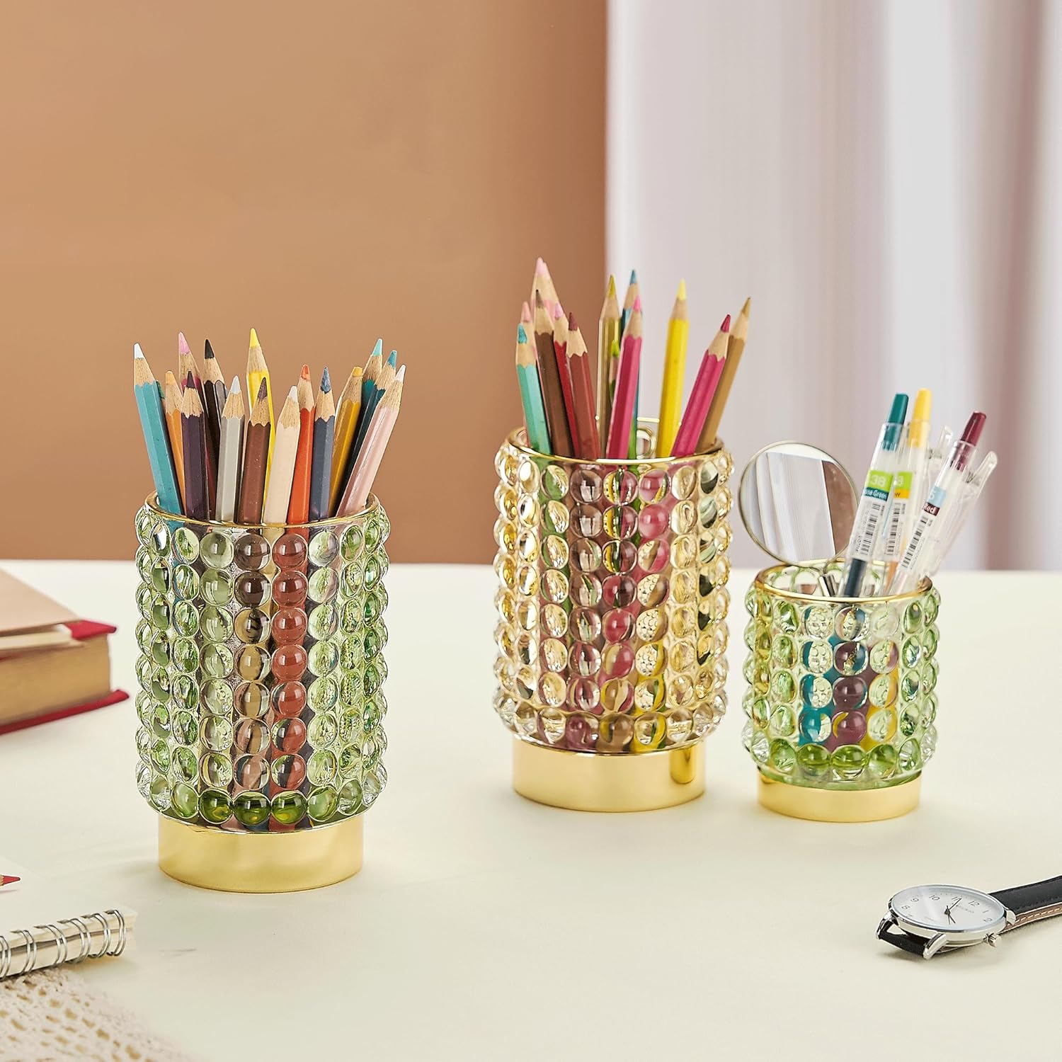 Makeup Brush Holder Organizer,Toothbrush Holders,Desk Pen Pencil Holder,Multifunctional Vintage Glass Brush Cup(A38-2-US/Green/L)